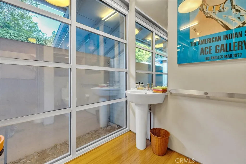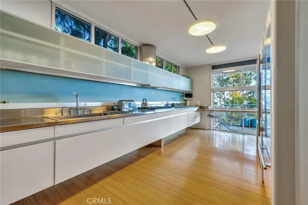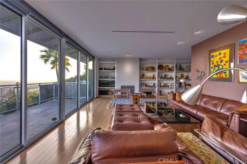 Perched atop the coveted Los Feliz Hills, this striking contemporary residencedesigned by architect Robert James Elderis a true architectural statement. Known as The Industrial House, this 3-bedroom, 3-bathroom home spans over 3,100 square feet across three meticulously designed levels, blending industrial aesthetics with modern comfort. Expansive glass walls and single-pane picture windows flood the interior with natural light and showcase panoramic views of the Los Angeles skyline and surrounding mountains. Whether you're enjoying your morning coffee or a sunset and dinner, every moment is framed by breathtaking scenery. The main level features a spacious living room with bamboo flooring, designer air ducts, and custom built-ins. A sleek galley-style chefs kitchen is outfitted with Sub-Zero, Miele, and Viking appliances, steel countertops, and an oversized custom spice rackideal for both entertaining and everyday living. The open-concept layout includes a den, powder room, and floor-to-ceiling windows for seamless indoor-outdoor ambiance. On the second level, you'll find three serene bedrooms, all offering stunning views. The primary suite boasts a private balcony, dual sinks, and a spa-like glass shower. The additional bedrooms are generously sized and share a beautifully appointed guest bath with an oversized tub and glass shower. The lower level offers flexible living space perfect for a family room, gym, or potential junior ADU, complete with exterior access. With exposed steel beam construction, bamboo finishes, and concrete staircases with designer railings, the hom