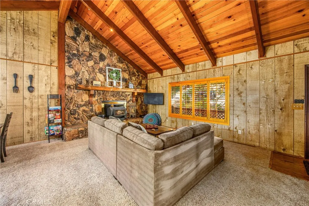 Welcome to this charming 4-bedroom, 3-bathroom mountain home nestled among the pines of Running Springs. Perfectly blending rustic character with modern comfort, this beautifully furnished home is move-in ready. Just bring your family and start enjoying mountain living. Inside, youll find vaulted wood-beamed ceilings, an open floor plan, and a warm stone fireplace that creates the perfect cozy atmosphere in the main living area. The spacious great room flows effortlessly into the dining space and kitchen, making it ideal for family gatherings or entertaining guests. The home features four comfortable bedrooms and three full bathrooms, offering plenty of space for everyone. A second fireplace in the bar area adds to the inviting mountain charm, while central air and heat ensure comfort throughout the year. For added peace of mind, the home is equipped with a full-house generator. Enjoy the peaceful surroundings from the covered front porch or step out onto the expansive balcony overlooking the beautiful wooded setting. Both spaces are perfect for morning coffee, evening sunsets, or simply soaking in the fresh mountain air. This home comes fully furnished, allowing you to move right in and start creating memories. With its open-concept layout, convenient driveway parking, and serene setting, it offers both comfort and functionality. Whether youre looking for a full-time residence, a weekend getaway, or a turnkey vacation home, this property offers style, warmth, and tranquility in one of Running Springs most desirable areas. Your perfect mountain escape awaits. Schedule a pri