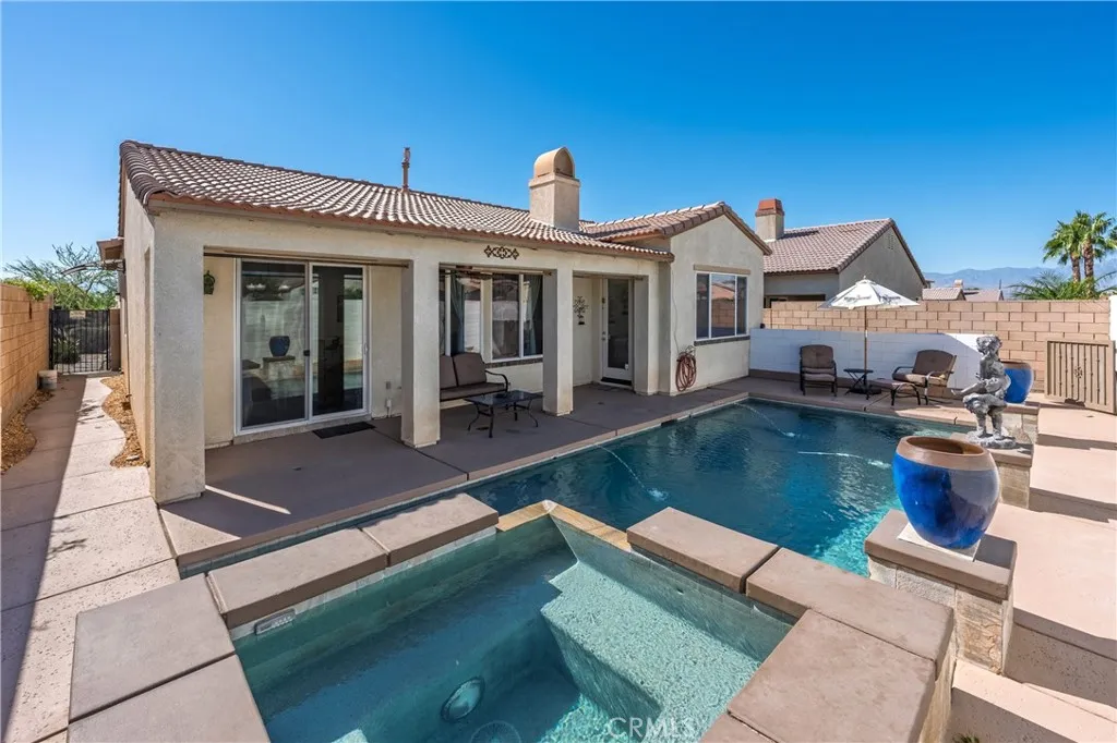 PRICE REDUCED! TURNKEY! APPROVED FOR SHORT TERM RENTAL! This beautifully remodeled 3 bedroom 2 bath home located within the Terra Lago Community has a private pool, jacuzzi and amazing mountain views! Its community offers amazing amenities such as a community clubhouse, a 3 acre lake, water sports, gym, a playground, BBQ area, a community pool/spa, 24 hour gate access, high speed internet, Direct TV cable and is adjacent to a golf course. The home features a spacious open-floor plan with a great room, gas fireplace, open kitchen, hardwood floors, high ceilings and a primary bedroom with en-suite bath. The kitchen has beautiful wood cabinetry, quartz countertops, tile backsplash, a center island with seating and built-in appliances. The spacious primary bedroom overlooks the pool area and has a large ensuite bathroom, soaking tub and walk-in shower. Additionally, the home has a salt water pool/jacuzzi, outdoor patio with pergola, EV charging station, automatic sprinkler and drip system and a spacious high ceiling 2 car garage. Enjoy the best Indio has to offer located just minutes to golfing, hiking trails, casinos, restaurants and Coachella!