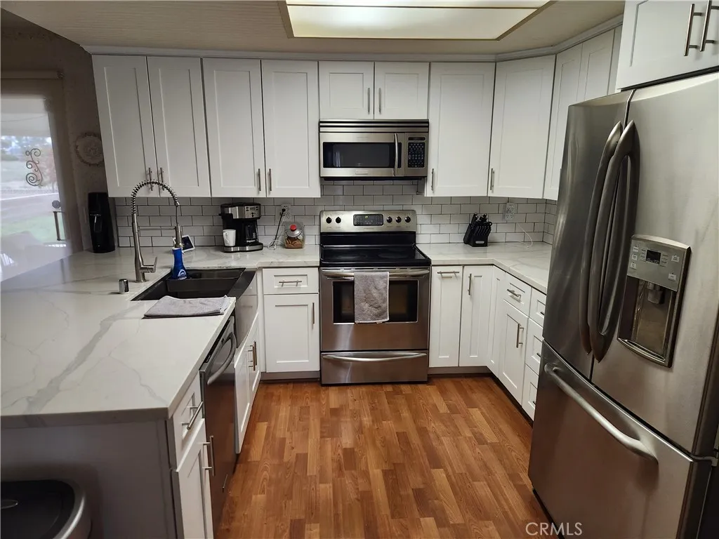 Pride of ownership shines in this desirable 55+ community of Sun City Civic Association! This charming 3-bedroom, 2-bath home offers low-maintenance landscaping and no neighbors directly behind for added privacy. The upgraded kitchen features an extended quartz countertop with a breakfast bar, a Lazy Susan, extra corner cabinet, pull-out spice rack, and a coffee mug holder. The spacious living room boasts a large panoramic window with stunning mountain views. One bedroom provides direct access to the hallway bathroom for added convenience. Enjoy additional features such as a mature orange tree, new sprinkler box, and a whole-house fan. Solar panels with a Tesla battery backup, youll never have another electricity bill! Washer, dryer, and refrigerator are all included. The Sun City Civic Association clubhouse offers a gym, two heated pools, and much more come see all this wonderful community has to offer!