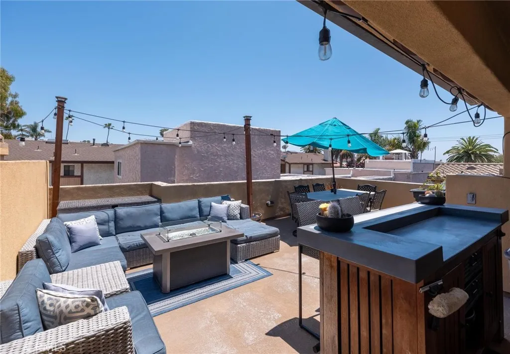 Private rear townhome that shares no walls. First floor features a welcoming foyer and 3 spacious bedrooms and a small kitchenette. 2nd level is a huge great room with vaulted ceiling and stacked stone gas fireplace. Entertainers kitchen with beautiful custom cabinetry and Viking Range. Great room french doors lead to a private balcony overlooking the rear yard with privacy wall and a sparkling above ground spa. Primary bedroom includes a gas fireplace and leads to the enormous primary bathroom which included a large double sink countertop, walk in shower and soaking tub. Maple hardwood floors throughout are in very good condition. This home is an entertainer's dream with a fabulous roof deck, with plenty of space to grill, dine, and enjoy the ocean breeze and view. It's a short walk to Seaside Lagoon, and both piers can be reached by bike in less than 10 minutes. Very friendly neighbors with no HOA, just an annual split of the insurance on the shared driveway. Quiet street with ample parking on both sides of the street.