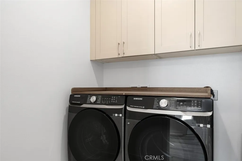 Welcome to the stunning, all-electric modern home with paid off solar panels. As you enter this home you will notice the high ceilings with all the natural light pouring in throughout the home. It has an open-concept floor plan with 4 bedrooms and 2.5 bathrooms, perfect for both entertaining and everyday living. This home has upgraded laminate floors throughout and features an open concept plan with a large kitchen, dining room and living room. The chef-inspired kitchen boasts soft-close shaker cabinets, white quartz countertops, a large kitchen island, a subway tile backsplash, featuring Samsung stainless steel appliances. The family and dining areas open up to your large private patio with concrete brick flooring, providing a perfect spot for outdoor relaxation and BBQs. A convenient powder room is located off next to the kitchen, alongside direct access to the large two-car garage, which features an electric port ready for an EV charger. Upstairs, the primary suite boasts high ceilings, abundant natural lighting, and a luxurious bathroom with his and hers sinks, an oversized shower, and a walk-in closet with plenty of clothing storage. Youll also find three additional spacious bedrooms with large closets, a full bathroom, and a sizable laundry room equipped with an energy-efficient Samsung washer and dryer. This all-electric home is designed with energy efficiency in mind, featuring energy-efficient appliances, windows, and a water heater, as well as a rainwater collection system and automatic sprinklers for the yard. With additional guest parking, this home is in a prim