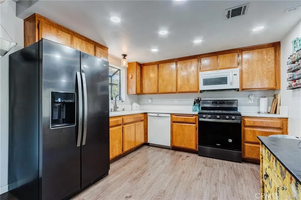 ***Beautifully Renovated Oak Hills Horse Property*** Welcome to this stunning open-concept home featuring gorgeous dark flooring, a cozy wood-burning stove with stone hearth, and ceiling fans throughout**Enjoy spacious rooms filled with natural light and breathtaking views of both the mountains and city lights** ***Just off the kitchen is a sunroom (not included in square footage) perfect for relaxing year-round/Office/Playroom or just that additional square footage that is needed***A massive indoor laundry room with ample cabinetry adds convenience and functionality*** ***Situated on a large lot in the highly desirable Snowline School District, this property is ideal for those seeking space and versatility** With fenced areas for goats, pigs, and chickens (complete with a chicken coop), its ready for homesteading or hobby farming***There is a fenced yard, mature trees, and wide-open views complete the setting**Bring your toys, animals or big trucks, this one has room for it all!!