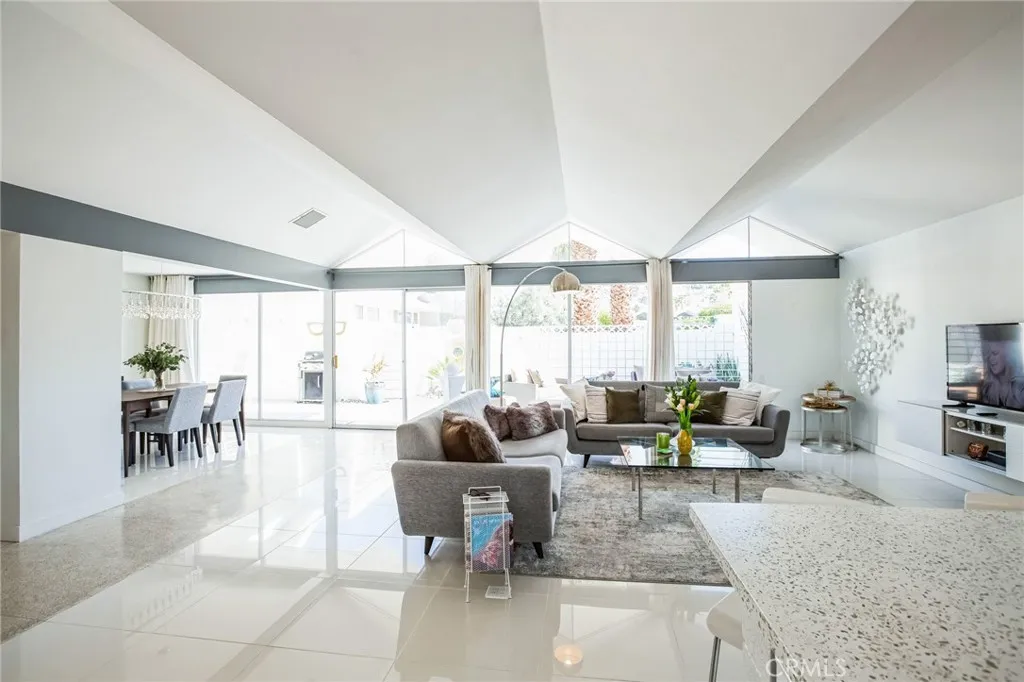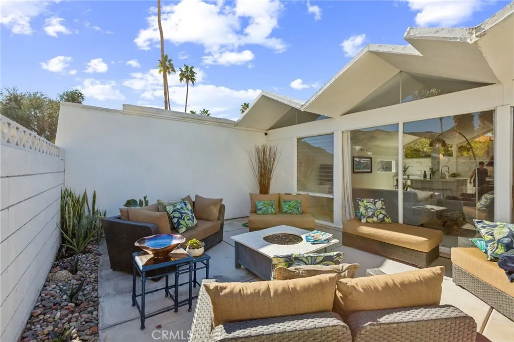 PARK Imperial South, 3.5-acre resort community built in 1961 in the south end of Palm Springs. A Berry Berkus designed mid-century modern community, best known for its unique folded plate rooflines and decorative concrete block design. Granted historical designation owners can apply under the Mills Act for significant property tax reduction. The signature steel hood fan, globe lighting, jalousie windows, terrazzo walkway and sculptural concrete block design, are just a few of the key mid-century design features. The 30-unit community features resort like grounds with mature palm and olive trees, all oriented around a large, gorgeous pool and spa. This unit has unobstructed views of the San Jacinto mountains from the patio and side kitchen window. This unit has a Southwest facing backyard providing natural light throughout the day. Inside this open concept unit, the original terrazzo runway leads from the entry, through the living room to the private walled patio. Floor to ceiling glass connects the social spaces to the large private patio. This unit features a primary bedroom, a 2nd bedroom which opens onto the patio with a mountain view. Open space concept for entertaining and a dining room off the living room that was originally designed as a convertible third bedroom/Den. The unit comes with one carport space directly out your front door. This updated home provides a modern update, building upon the unique mid-century modern design, for you to enjoy a piece of modernist history as well as the best of current mid-century Modern day Palm Springs. Unit is TURNKEY!