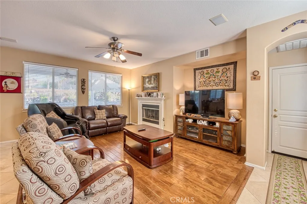 Highly sought after Harveston Lake neighborhood, 4 bedroom, 3 bath home. The formal living room rests off the front entry that then takes you to the formal dining room, bright and open kitchen and Great Room. The kitchen features natural wood cabinetry, stone counters with a large eat around island. The Family Room has a fireplace and access to the private backyard with covered patio. Completing the downstairs is a nice sized bedroom and a full bath. The upstairs has three more bedrooms, including a primary suite with a fireplace and spa like bath. Engineered wood flooring throughout with carpet for comfort in the bedrooms. Extended private driveway leads to a three car garage. Backyard has a patio cover and outdoor bar ready for your grill. Dual air conditioning keeps the home comfortable year round. The highly desirable Harveston Community includes a lake, pool, clubhouse & award winning schools. Short distance to schools, Promenade mall, restaurants & easy access to freeways.