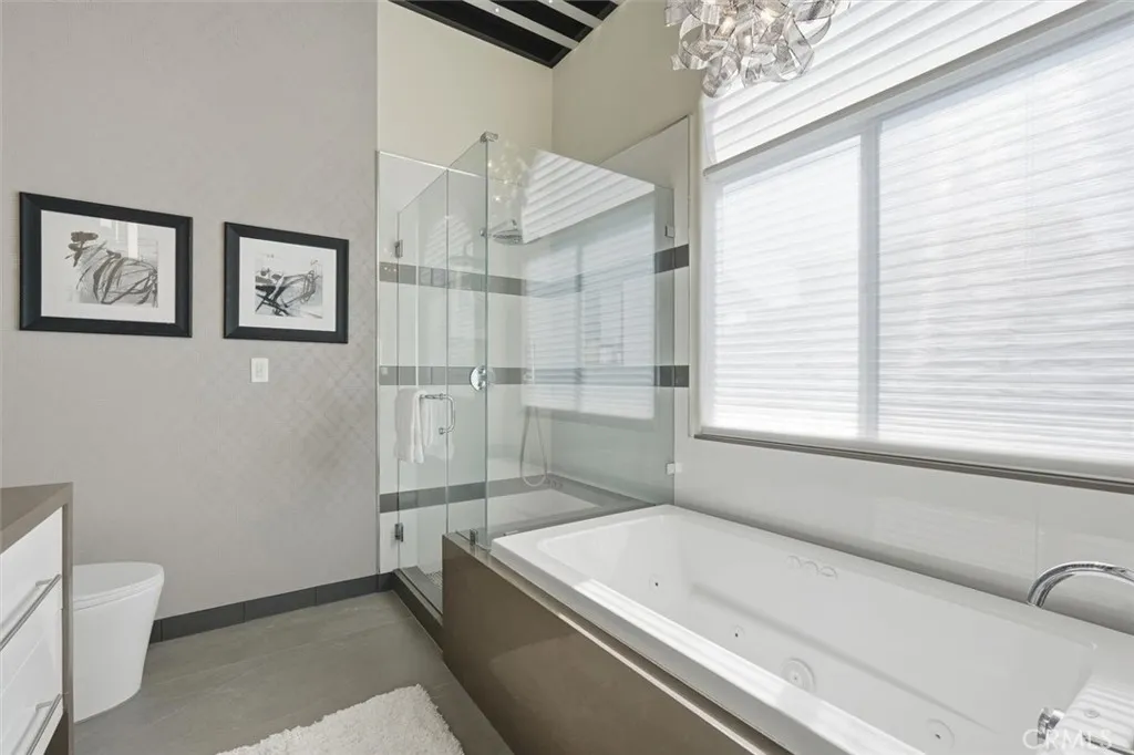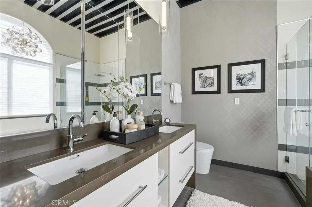 ** Amazing Rare Opportunity** This light-filled, unique contemporary home with many amenities offers elevated living experience in style, with soaring skylights and wide mountain and city views. The spacious, functional floor plan creates an effortless flow throughout. Picture yourself each morning in the spacious primary suite with extra sitting space, fireplace and walk-in closet, and adjacent bathroom where "starry sky" LED lights illuminate your ceiling and heated floors warm your feet. The newly-designed spa-like bathroom features Toto dual sinks, a rimless glass shower with Grohe fixtures and jacuzzi tub, while modern chandeliers and automatic Hunter-Douglas shades cocoon you in perfect tranquility. Your gourmet kitchen features professional-grade stainless steel appliances such as Bosch, Jen-Air, GE and a large skylight up above. The whisper-quiet full climate control with micro filtration system maintains perfect comfort. Smart home WiFi devices make maintenance effortless from the heat-reflecting roof to advanced water management, plus Ring security. Move-in ready with appliances including refrigerator, washer and dryer. Conveniently located near freeways, shops, schools, and LAX.