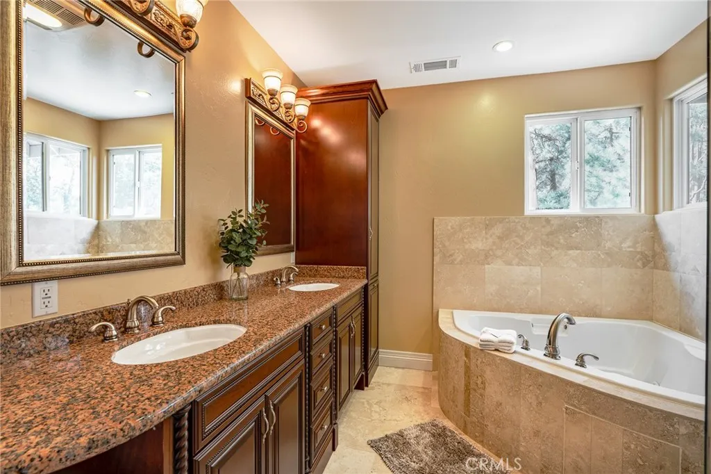 What if your Lake Arrowhead budget could buy over 4,000 sq ft? Discover a spacious mountain retreat with private ensuite bedrooms, two inviting living areas, a dedicated game room, an oversized 3-car garage, and room for everyone to relax, gather, and unwind. Lake rights add even more to the lifestyle, giving you access to one of Lake Arrowheads most treasured amenities. Ideally suited for memorable family getaways, executive retreats, or full-time mountain living. The chefs dream kitchen is equally impressive, featuring a walk-in pantry, oversized island with sink, dedicated coffee station, and premium stainless steel appliances designed for effortless entertaining and everyday enjoyment. The main living area welcomes you with soaring vaulted ceilings that enhance the sense of light, scale, and mountain charm. Thoughtful upgrades add comfort and peace of mind, including brand new Milgard dual-pane windows, new redwood railing surrounding the home, new tankless water heater, fire sprinklers, and a new water main. A well-appointed indoor laundry room offers a utility sink, folding table, and ample cabinetry for everyday convenience. Outside, enjoy a mature peach tree that produces an abundance of fruit, a private driveway with additional parking, and the convenience of a snow-plowed road for year-round easy access. If youve been searching for space, comfort, and a true mountain lifestyle with lake rights, come experience this home in person.