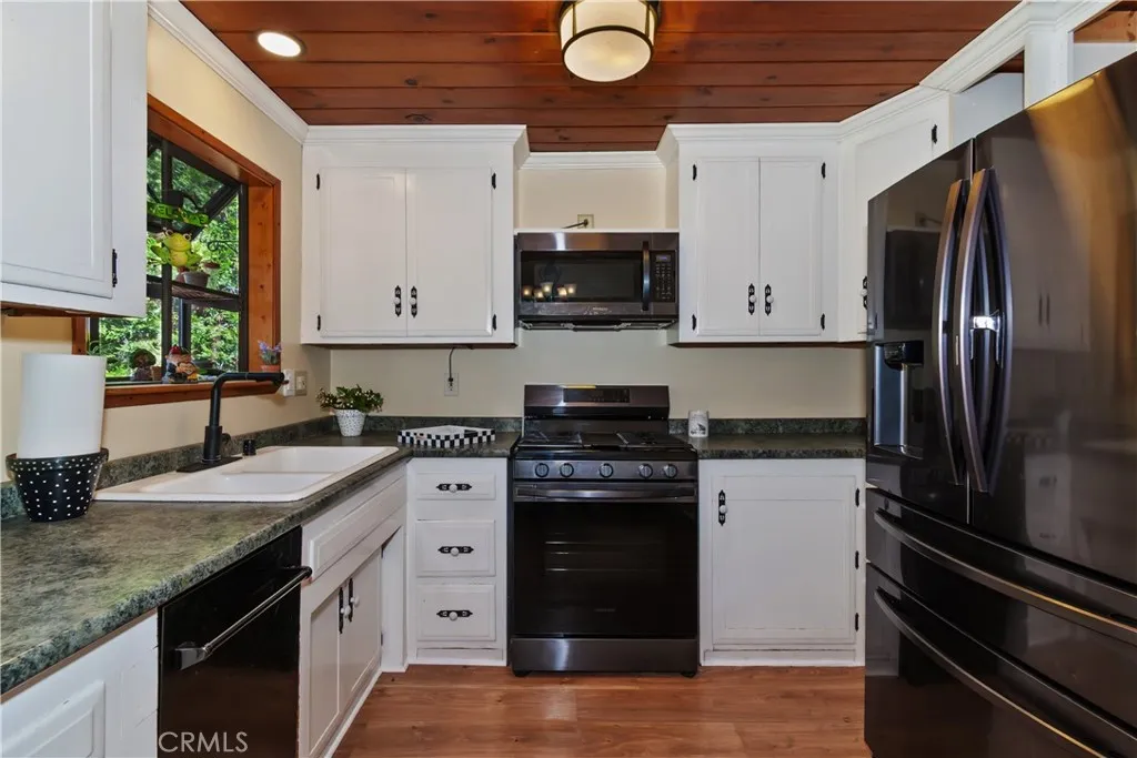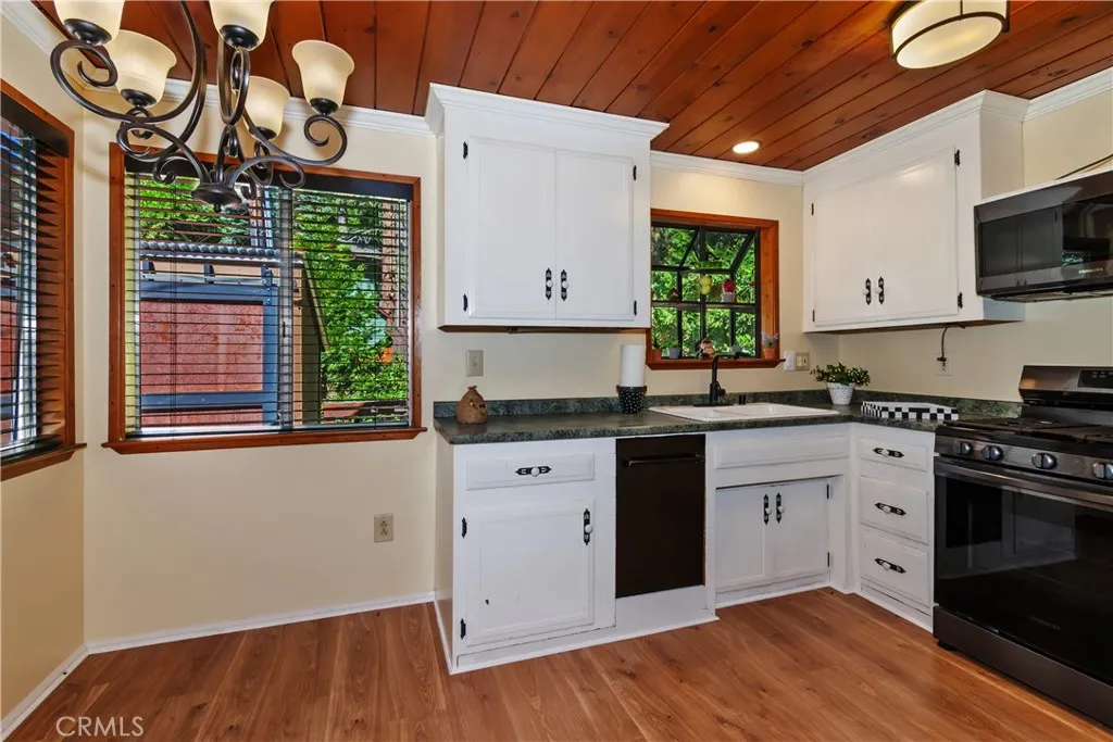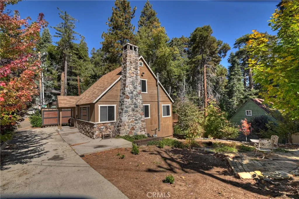 Take a look at this beautiful vintage cabin from 1935 with so many thoughtful upgrades! It sits on a corner lot and offers easy entry with only 2 small steps. Two bedrooms conveniently located on the main level, and the master bedroom upstairs is complete with a full bathroom and cozy sitting area. Breathtaking custom split granite wood burning fireplace with gas starter and arrowhead features demands to be the focal point of this room! Some of the many upgrades include electrical, tankless/on-demand hot water heater, plumbing, as well as a Generac Generator for emergencies and a Lorax Ultra Surveillance system for peace of mind. Beautifully updated kitchen, with newer appliances. Rustic T&G wood paneling enhances the cabin's charm. Lower level has an expansive open workshop/cellar type area, offering ample space and numerous possibilities. Outdoors you can get your fill of nature's beauty on this wrap-around deck or out on the gentle sloping yard. Easy access drive through style driveway with plenty of off-street parking. Additionally, the possibility of RV parking around the side, there's even a big wood or tool shed! This property is about an hour to Big Bear, and typically under 2 hours from LA, making it a fantastic commuter location. And of course, it is very close to many popular restaurants and shops in oh so popular Sky Forest..... home of LouEddie's Pizza. Minutes to historic Lake Arrowhead Village and the ever popular SkyPark at Santa's Village!