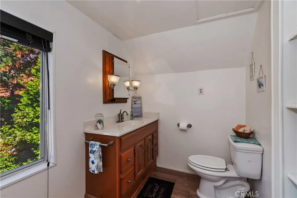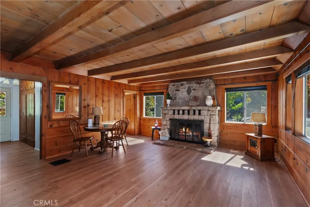 Take a look at this beautiful vintage cabin from 1935 with so many thoughtful upgrades! But let's start with the charm of it first.....breathtaking custom split-granite wood burning fireplace has a beautiful arrowhead featured in the center....it demands to be the focal point of this room. Rustic T&G wood paneling enhances the cabin's character. It sits on a corner lot and offers easy entry with only 2 small steps. Two bedrooms conveniently located on the main level, and the master bedroom upstairs is complete with a full bathroom and cozy sitting area. Some of the many upgrades include electrical, tankless/on-demand hot water heater and plumbing/low-flow toilets!! If you get caught in a snow-storm... not to worry if your power goes out....the Generac Generator is ready to go!!!~Additionally, there is a Lorax Ultra Surveillance system for peace of mind. Updated kitchen, with newer appliances. Lower level has an expansive open workshop/cellar type area, offering ample space and numerous possibilities. Outdoors you can get your fill of nature on the wrap-around deck or get to planting on the gentle sloping yard. Nice privacy too!!! Easy access drive through style driveway with plenty of off-street parking. Additionally, the possibility of RV parking around the side, there's even a big wood or tool shed! This property is about an hour to Big Bear, and typically under 2 hours from LA. And of course, it is very close to many restaurants and shops in oh-so-popular Sky Forest..... home of LouEddie's Pizza. Minutes to historic Lake Arrowhead Village and the ever popular SkyPark at