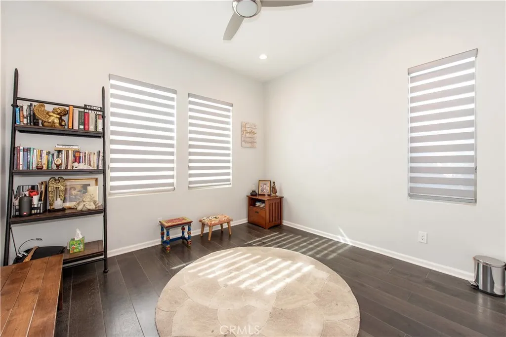 Turnkey! Enjoy effortless living earned at Terramor, a highly sought-after 24/7 guard-attended gated 55+ community. Located on a desirable corner lot, this cozy single-story home is designed for likeminded residents seeking peaceful well-being. The fully paid-off solar system locks in low electricity costs, providing immediate comfort and a lasting energy advantage. As you step into the home, it greets with an open, cozy living room filled with abundant natural light that flows seamlessly into the kitchen and dining area. Visualize preparing meals at the central island, where the kitchen elevates daily necessity with upgraded Quartz countertops, a sensor faucet, and an upgraded KitchenAid stainless appliance suite featuring a 6-burner range and a dedicated ventilation system that allows you to fully immerse in the gourmet experience to share with family. The interiors soothe senses with upgraded earthy tone paints and modern remote-controlled window blinds, complemented by a water softener for quality water and continuous upgraded wood flooring throughout the living space, all illuminated by recessed lighting and an upgraded dining room chandelier. Comfort is further enhanced by ceiling fans in the living room and both bedrooms. The master bedroom offers a good-sized walk-in closet with sensored lighting, while a second bedroom, currently used as an in-home office, demonstrates flexible living. Step through the sliding door from the dining room onto a private patio to entertainthe center of a tranquil, fully landscaped, low-maintenance backyard oasis, secured and ready for