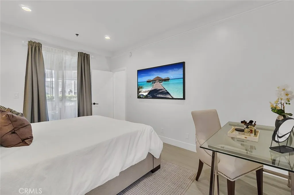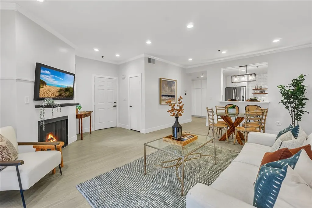 Charming Garden Grove Condo! Located in the desirable gated community of Greenbrier Terrace, this single-level 2-bedroom, 2-bathroom home offers 1,057 square feet of comfortable living space and is truly move-in ready. Enjoy access to resort-style amenities, including a heated pool and spa. Step inside to find smooth-finish walls, LED recessed lighting, and a bright, open layout that seamlessly connects the dining and family rooms. The spacious kitchen is thoughtfully appointed with a white subway tile backsplash, quartz countertops, newer stainless steel appliances, a gas stove, deep pantry, and a pass-through window to the living areaperfect for entertaining. A laundry area with an electric dryer is conveniently located just off the kitchen. The primary bedroom is generous in size and features a large walk-in closet, double-sink vanity, and a spacious shower area. The second bedroom is ideally situated on the opposite side of the condo, adjacent to the updated hall bathroom, which includes a new, larger vanity. Additional highlights include central HVAC, private covered parking, and a detached 2-car garage with extra storage. The home also offers a high level of privacy, both indoors and out, and includes a private patio for relaxing or entertaining. Dont miss this opportunity to own a beautifully maintained home in a tranquil community, close to local shopping, dining, and freeway access!