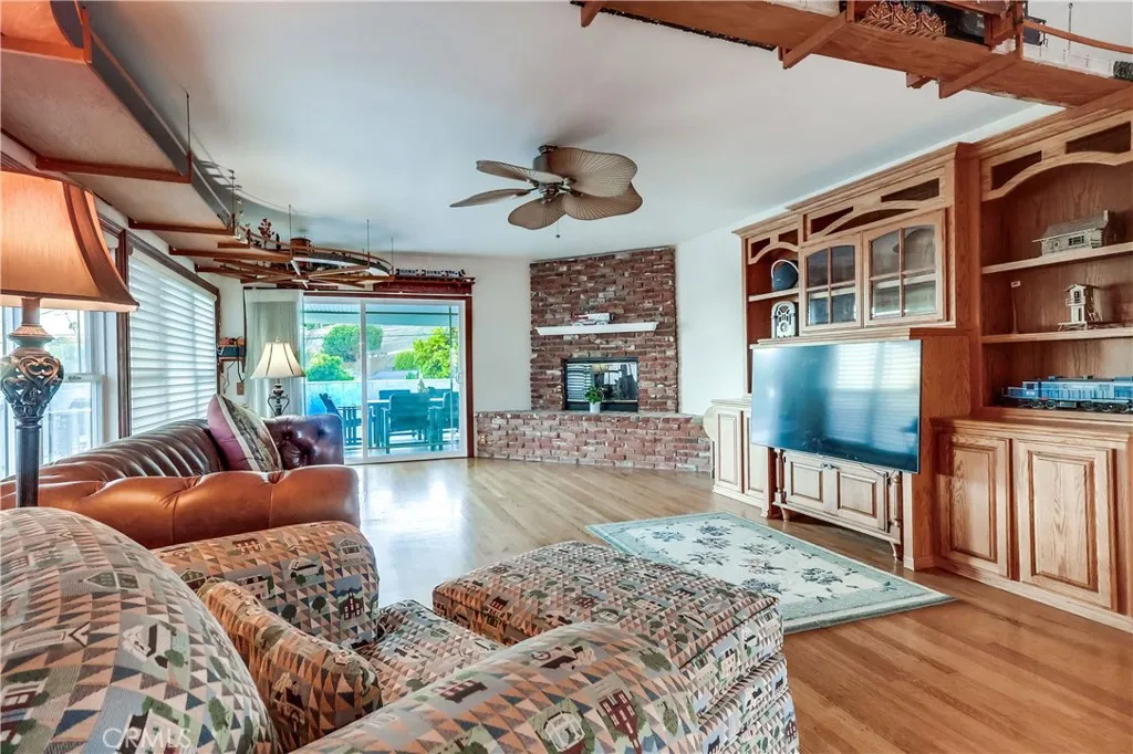 Welcome to this beautifully renovated Spanish-style home featuring 2 bedrooms and 1.5 bathrooms, located in a desirable area of San Pedro. This spacious residence offers classic architectural charm with modern updates throughout. The inviting entry opens to a bright living room with a fireplace, and a large bonus room provides additional flexible living space, complete with a second fireplace. The kitchen is charming with unique features, plenty of cabinets and finishes to embellish the ambiance. THE HUGE BONUS ROOM ADDS TO THE ELEGANCE OF THE HOME. THE POSSIBILITIES OF THIS ROOM ADDITION AND SPACIOUS DECK ARE ENDLESS, ( IE: possibly a 3rd bedroom suite and still plenty of room.) A sliding door from the bonus room leads to a spacious deck overlooking the well-maintained backyardideal for outdoor enjoyment. The upgraded basement offers additional potential for storage, a workshop, or expanded living options (buyer to verify use). The property includes ample parking with a two-car garage with alley access, and a partial view from select areas. Be sure to step inside and you will be delighted with the charm of this wonderful home. Some of the additional New features: New tile in bathrooms, paint throughout interior, including ceilings, fireplace mantels, lighting fixtures, electrical panels/service flooring in entry and closet, water softener system and so much more. Smooth stucco done on exterior in 2019.