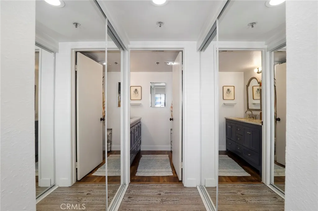 STUNNING TOP-FLOOR CONDO WITH VAULTED CEILINGS & OPEN VIEWS. Welcome to 6545 Reseda Blvd #19, a beautifully upgraded 2-bedroom, 2-bathroom condo offering style, comfort, and peace of mind. This home features soaring vaulted ceilings, abundant natural light, and sweeping mountain and city light views. Inside, the living and dining areas feel open and inviting with newer, high-quality wood/laminate flooring, recessed lighting, and a decorative gas fireplace that adds character and warmth. The modern kitchen showcases sleek Quartz countertops, stainless steel appliances, and a built-in reverse osmosis water filter with pure alkaline water at the tap. A new premium full-capacity washer and dryer are tucked neatly into a dedicated laundry closet. The primary suite provides a private retreat with two large closets and a remodeled en-suite bathroom featuring a dual-sink Quartz vanity and a walk-in shower with a dual shower system, including a rainfall shower head. The second bedroom offers flexibility for guests, a home office, a nursery, or bonus space. Step outside to your private balcony, where open views create an enhanced sense of tranquility the perfect spot to enjoy morning coffee or evening sunsets. Additional highlights include built-in smart features such as the latest Google Nest energy-saving thermostat, smart light switches that connect to your phone for control by voice or remotely, and a keyless touchpad front door lock. The home also offers a recently serviced central air and heating system for year-round comfort. For added convenience, enjoy two side-by-side park