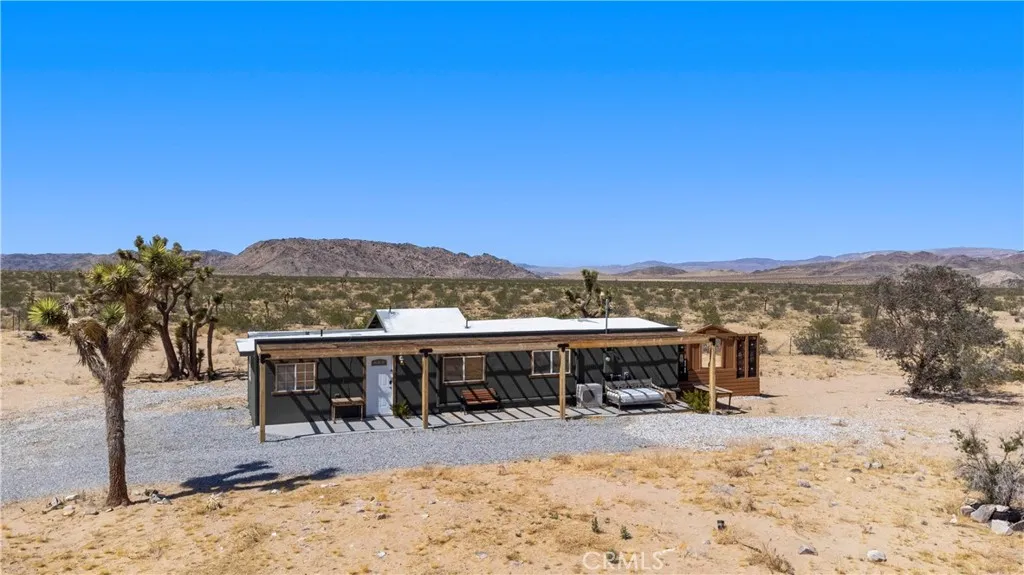 Step into your own private desert paradise with this unique, two bedroom (plus bonus room), one bath, fully-fenced five-acre property, offering peace, privacy, and endless natural beauty. Nestled in the heart of Landers, this charming home, provided fully furnished, provides direct access to miles of government-owned land a rare opportunity to live next to an unspoiled, forever-wild setting. Hike nearby Goat Mountain or venture out to legendary Giant Rock from right outside your door. Just a short stroll in the other direction, youll find the Integratron, offering rejuvenating sound baths and a tranquil escape for the mind and body. Back at home, greet guests on the welcoming front porch or retreat to the private, hidden back porch the perfect place to relax and take in the sweeping desert views and the seemingly never-ending wilderness that stretches out beyond your property. A brand new viewing deck and spa area are perfect for watching the sunset and stargazing at night. You will love watching the sunrise from the Saltillo-tiled patio. Originally built in 1958 and thoughtfully expanded over the years, this home has been recently updated and remodeled with modern touches. The spacious layout offers plenty of room for relaxation and enjoyment, whether youre entertaining or seeking solitude. With its unparalleled access to nature, modern conveniences, and boundless potential for customization, this is Landers at its finest. Whether you're looking for an investment property (home is successful short-term rental), remote desert getaway or a place to settle into the tranquil