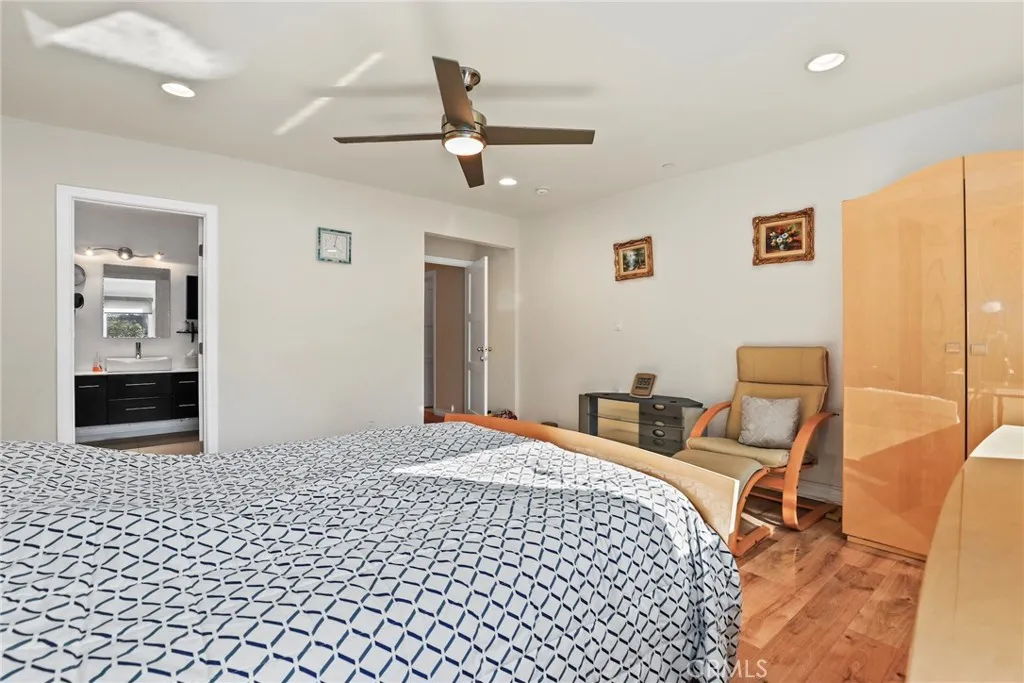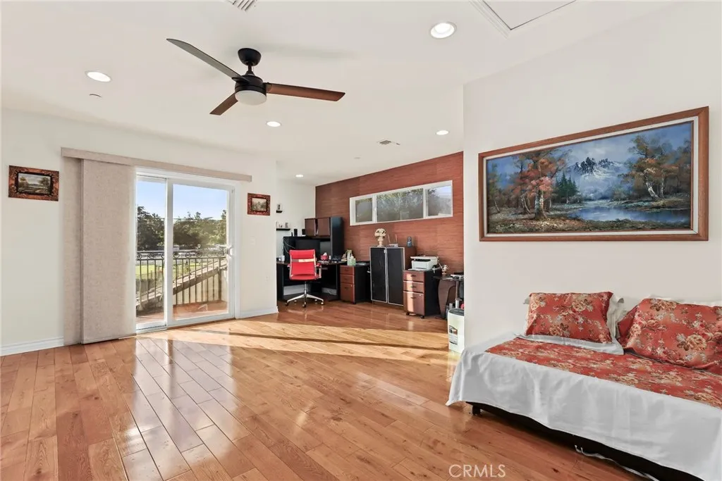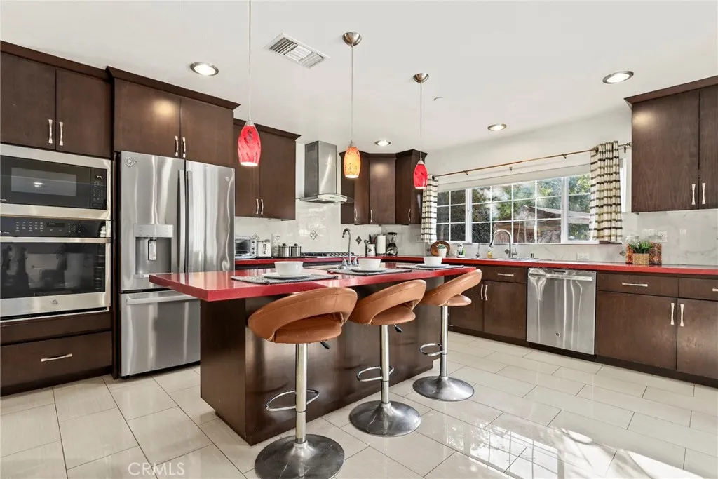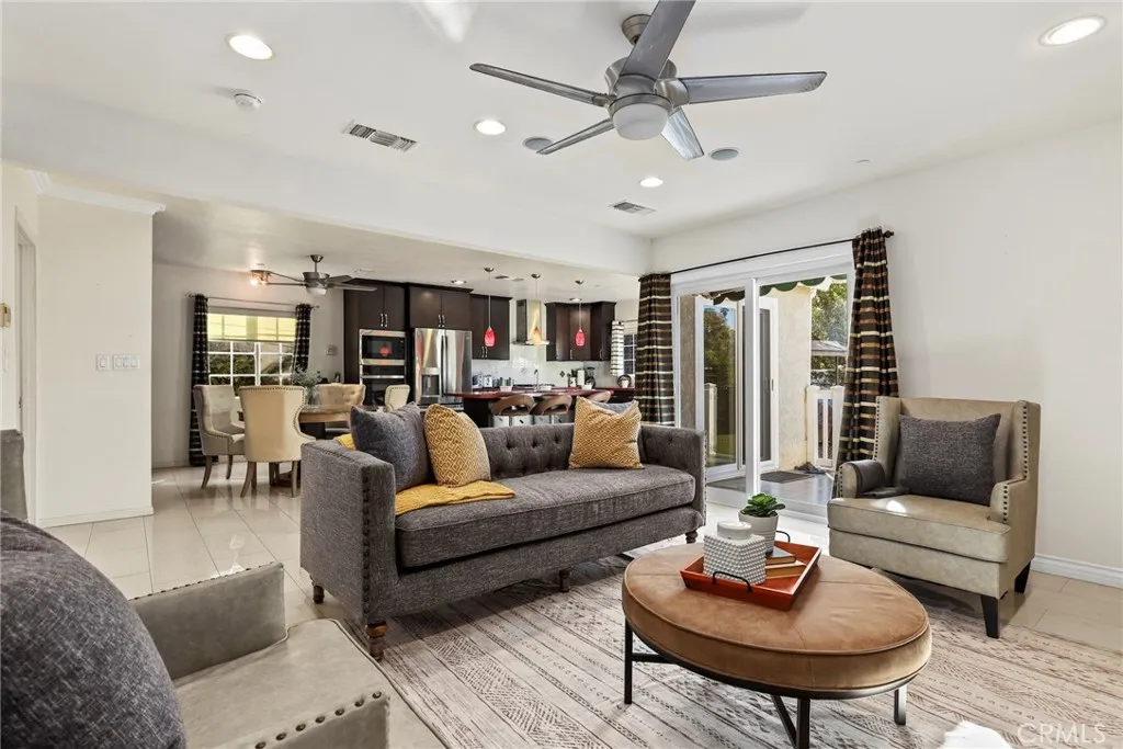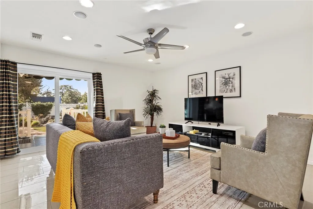 Welcome to this spacious and thoughtfully upgraded 6-bedroom, 5-bathroom home with room for everyone! As you enter through the double doors, youll be greeted by a formal entry with high ceilings, a stunning marble foyer with a custom medallion and a very welcoming feeling. The large living room features cozy carpet, fireplace, and recessed lightingperfect for relaxing or entertaining. A formal dining room for hosting large gatherings. Brand new sliding glass doors help keep things quiet and energy efficient. The custom kitchen is a chefs dream, with an eat-in island, dining area, GE appliances, a single oven with microwave above, trash compactor, tile flooring, and plenty of storage. The kitchen sink has its own water filtration system. This home offers real hardwood and carpet flooring, ceiling fans in all rooms, built-in speakers, and a security system with a front yard camera for peace of mind. It also has a paid-off solar system, a tankless water heater, and dual-zoned HVAC...each bedroom has its own temperature control for convenience. There are three bedrooms downstairs, including a primary bedroom with a remodeled Jacuzzi bath. Two more remodeled bathrooms are also on the main floor. Upstairs youll find three additional bedrooms, including a second primary bedroom with another remodeled Jacuzzi bath, and a hall bath. The upstairs primary bedroom also offers a balcony to enjoy the gorgeous view of the mountains. The inside laundry room includes the washer and dryer (watch your step when entering), and the home features an interior fire sprinkler system for added safet