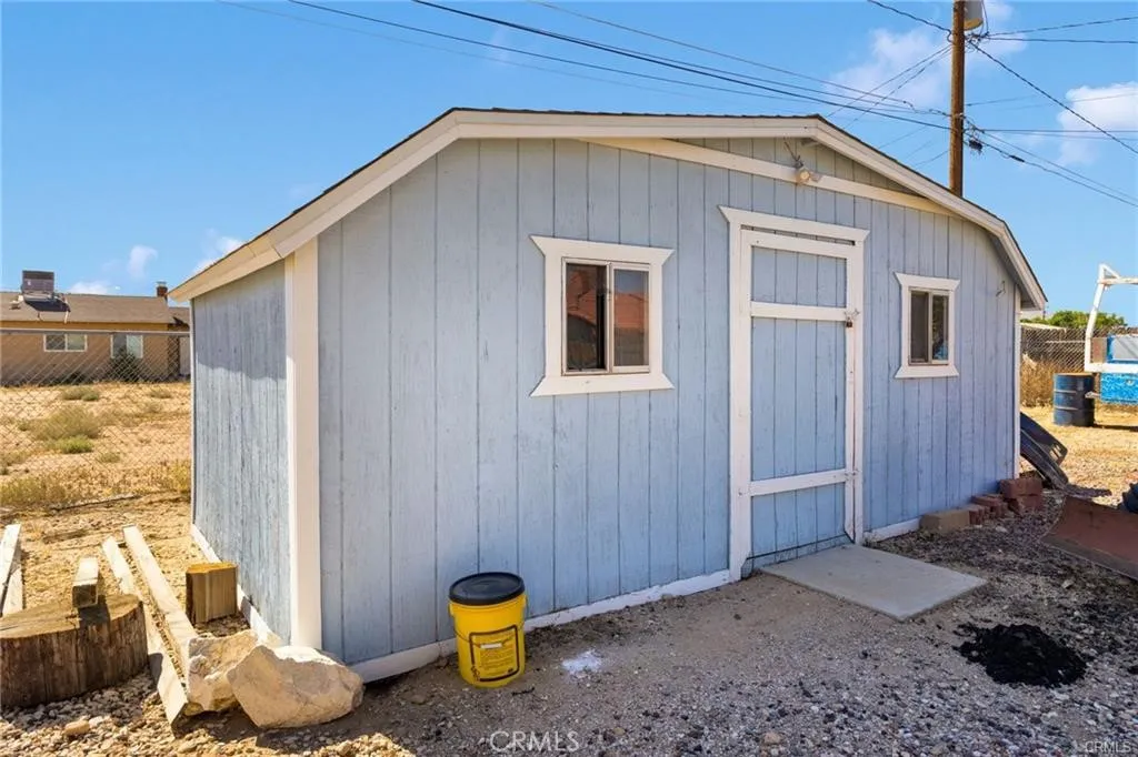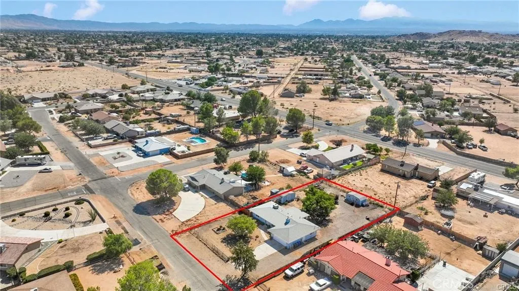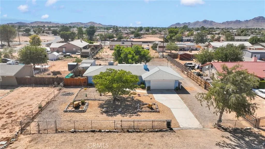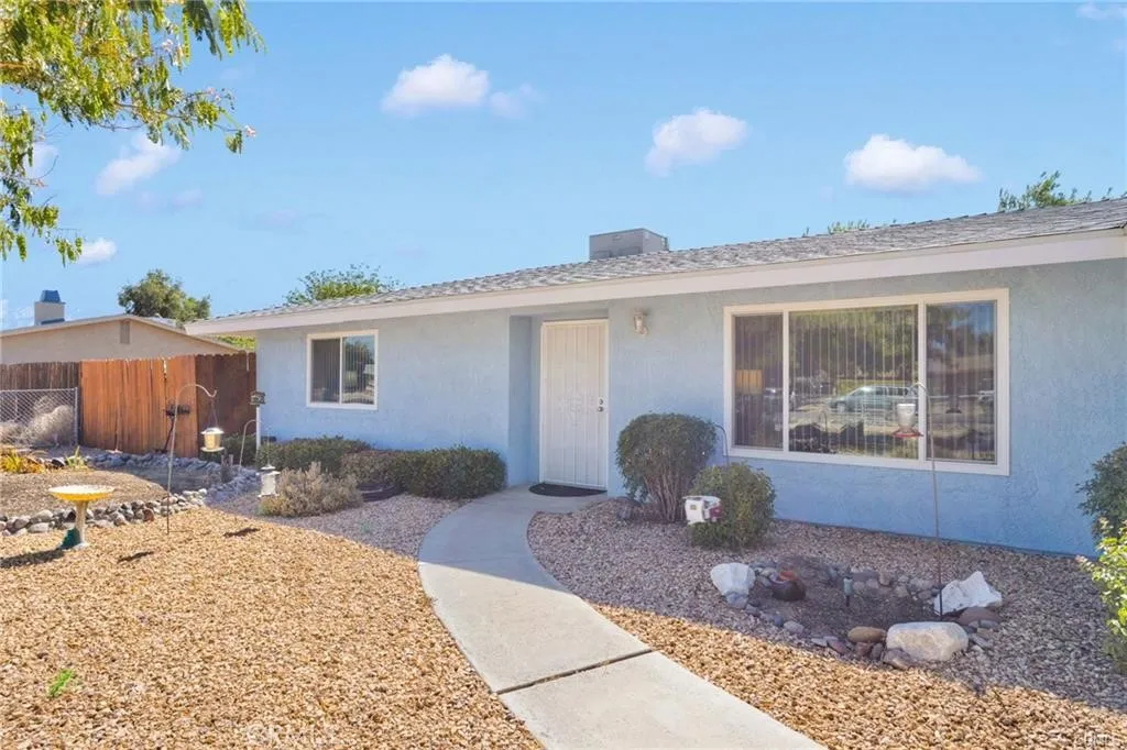 Welcome to this beautifully updated three-bedroom, two-bathroom home nestled in the heart of Apple Valley's peaceful desert community. This thoughtfully designed residence features a split floor plan with an open concept that seamlessly connects the living spaces, creating an ideal environment for both daily living and entertaining guests. The home showcases numerous recent improvements that enhance both comfort and efficiency. A freshly painted exterior welcomes you to a property that has been meticulously maintained, complete with a new roof, new windows, and an updated guest shower. Inside, you'll appreciate the modern conveniences of smart technology, including a wireless garage door, thermostat, and stove that bring contemporary living to this charming desert retreat. The living room serves as the heart of the home, featuring attractive laminate flooring and a cozy wood-burning insert that provides warmth during cooler desert evenings. The completely fenced property offers exceptional outdoor living opportunities with a covered patio perfect for year-round enjoyment and a spacious yard that provides ample room for a future pool and recreational vehicles. Practical amenities include convenient recreational vehicle access and two electrical-equipped sheds for additional storage. The generous lot size truly sets this property apart, offering endless possibilities for desert enthusiasts who enjoy outdoor activities and entertaining. Located in a family-friendly neighborhood with easy access to local parks, shopping, and schools, this home combines the tranquility of desert