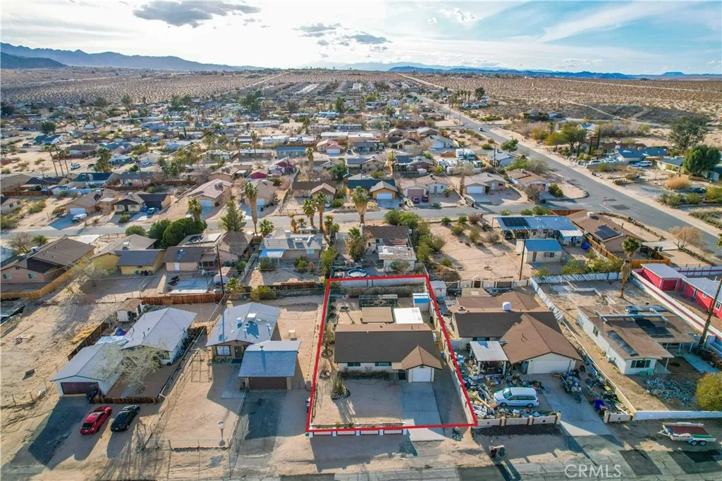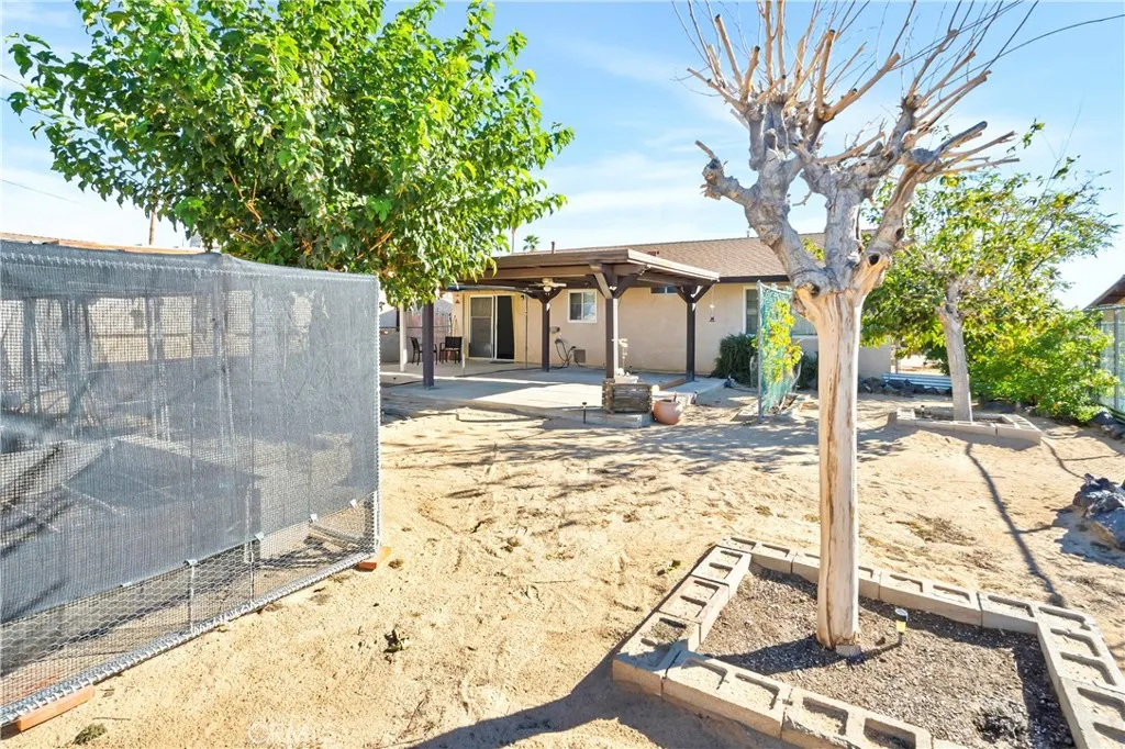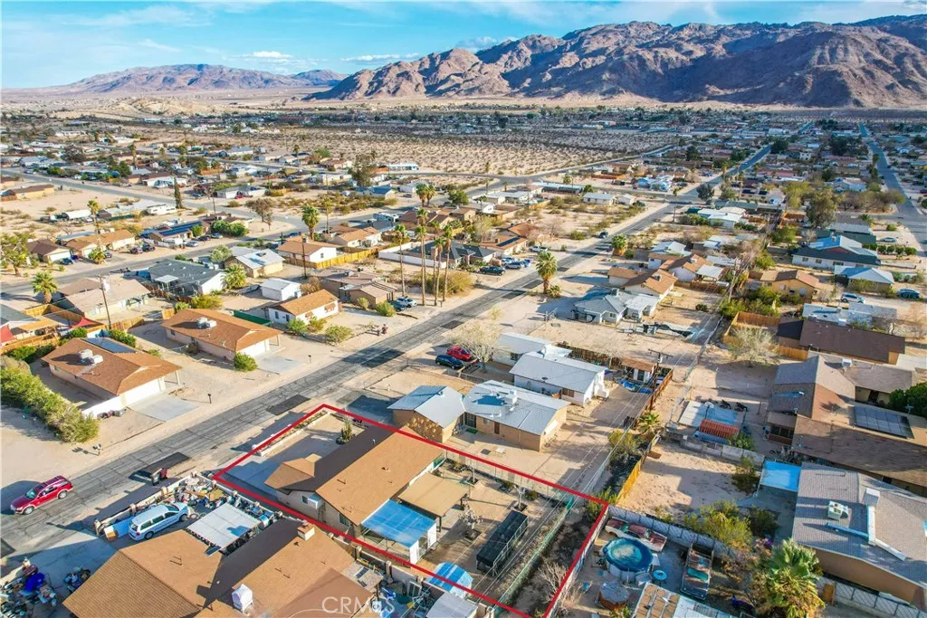 Welcome to your charming home! This delightful two-bedroom, one-bath residence in the sought-after Chocolate Drop area of 29 Palms is ready for its next chapter. With its unique character and well-maintained condition, this property offers the perfect blend of comfort and affordability in today's competitive real estate market. Inside, you'll find stylish wood laminate and tile flooring throughout, adding a contemporary touch to the home. The newer roof, along with a recently installed water heater and refrigerator, ensures modern conveniences for everyday living. Step outside to your very own backyard retreat, featuring a spacious covered patio that's perfect for gardening and outdoor relaxation. The fenced backyard provides privacy and a safe space for pets or children to play. Located on a quiet street in a rapidly growing neighborhood, this property is just minutes from the entrance to Joshua Tree National Park, Downtown 29 Palms with its expanding array of shops and amenities, and the Marine Base. Plus, you're only an hour away from the vibrant atmosphere of Palm Springs. This home is the ideal starter opportunity, investment, or primary residence! Dont miss the chance to explore this special propertyschedule your showing today!