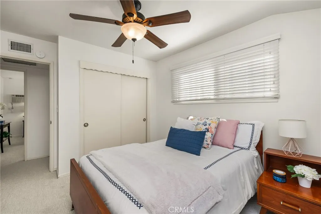 Charming Single-Story Home in a Prime Location! This beautifully maintained 3-bedroom, 2-bath home offers comfort, style, and convenience all in one. The inviting living room features a classic brick fireplace and shutters creating a warm and welcoming atmosphere. The upgraded kitchen boasts granite countertops, stainless steel appliances, pull-out shelves, a lazy Susan, a pantry, and an open layout to the dining area perfect for everyday living and entertaining. Each of the three bedrooms offers ceiling fans, while the primary suite includes mirrored closets. The home has been freshly painted inside and features brand new carpet throughout, giving it a crisp, move-in-ready feel. Youll also appreciate the convenient interior laundry room with built-in cabinets for added storage and organization. Additional upgrades include newer air conditioning, furnace, and ducting, as well as a replaced water heater for added peace of mind. Dual-paned windows and slider, front door with beveled glass, upgraded electrical panel, and a kitchen line re-pipe add to the value and efficiency of this wonderful home. Enjoy year-round gatherings under the covered patio overlooking the private, pool-sized backyard. A two-car garage with roll-up doors and an extended driveway for up to five cars provide ample parking. Conveniently located within walking distance to Palm Lane Park, shopping, and dining this home combines comfort, quality, and accessibility in one exceptional package. Your home search is over!