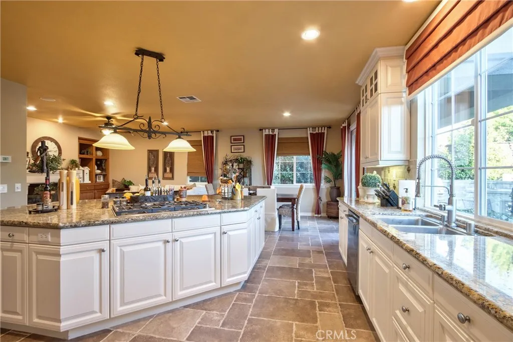 Welcome to the highly coveted gated community of the Fairways in Redhawk. This well appointed Italianate home has PAID SOLAR and no direct front facing neighbors and the back views to the third fairway of the Redhawk Community Golf Course and the beautiful Palomar Mountain. Enjoy cool backyard breezes due to the prime elevation of the home alignment to the Rainbow Gap. You will fall in love with the spacious and open floor plan. Step inside the glass wrought iron double doors to a grand formal entry and living/dining room with high volume ceilings. The heart of the home is the kitchen featuring a large center island, granite counter tops, glass mullion cabinetry, stainless steel dual ovens and a DCS 5 burner gas cooktop. The kitchen flows seamlessly into the open concept family room and informal dining room offering a fireplace and french doors that open to the back yard. The home has been highly upgraded with custom built in cabinetry throughout and designer touches. Surround sound speakers hardwired throughout most of the home interior and backyard with central volume controls which provide a great addition for holidays and entertainment. Delight in year round outdoor entertaining in the resort style backyard; with your own private saltwater pool, spa and a custom built outdoor kitchen featuring a natural gas barbecue, cooktop and refrigerator. The backyard has been landscaped to perfection with several areas to relax and enjoy the views. The interior of the home features 4 bedrooms and 3 bathrooms, including 1 bedroom/bath downstairs for multi generational living and an