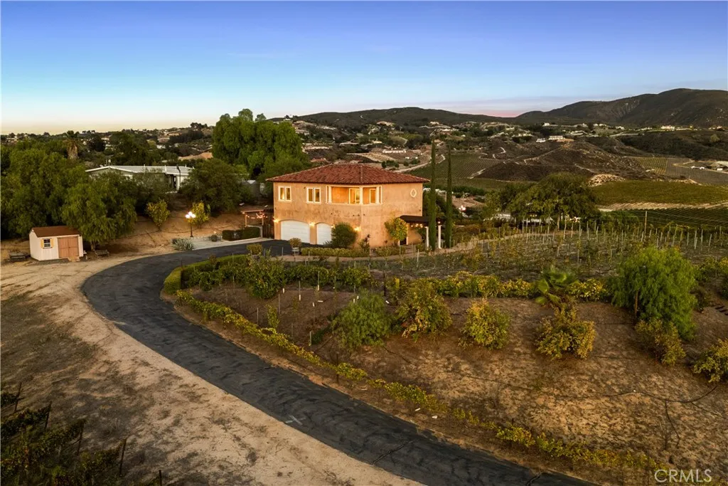 A rare and distinguished offering in the heart of Temecula's prestigious De Portola Wine Trail. This extraordinary 10.38-acre parcel is not merely a residence; it is a fully realized opportunity for a private luxury estate or an emerging artisanal winery. The Vineyard Foundation: The acreage currently hosts meticulously maintained varieties of Cabernet Sauvignon, Cabernet Franc, and Zinfandel, providing an immediate, high-quality foundation for a boutique label. With desirable Winery District zoning, the property is poised for the development of a Class II winery, providing an ambitious owner with the permits to craft, bottle, and market their own Temecula Valley vintage. The Residential Retreat: The charming two-story residence serves as an elegant owner's retreat or a sophisticated tasting room prototype. Featuring dual-facing balconies, the home is perfectly sited to capture panoramic 360-degree viewsfrom the morning spectacle of hot air balloons to the majestic Palomar Mountain at sunset. The dedicated winemaking room and four-car garage offer the practical infrastructure for both private and commercial operations. The Visionary Potential: Beyond the existing structures, a generously sized pad presents a unique architectural canvas for expansionbe it an elevated custom villa, a world-class hospitality venue, or a serene pool oasis. Situated directly across from acclaimed Leoness Cellars, this is an unparalleled chance to secure a legacy-grade holding in one of Southern California's most dynamic viticultural regions. This is the definition of wine country provenance.