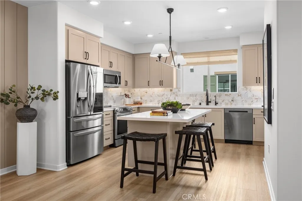 Dont miss this rare chance to own a fully upgraded model homeand as a special incentive, the furniture can be included with a purchase by the end of November and January closing! This light-filled end-unit features wood-treated tongue-and-groove accent walls, two sets of custom built-in shelves and cabinets, and designer-selected wallpaper accents. The kitchen shines with upgraded Shaker cabinets, quartz countertops, and a Jeffrey Court marble mosaic backsplash. LVP flooring runs throughout most of the home, with carpet only in two bedrooms. The beautifully enhanced primary suite offers a spa-like bath with a Toto washlet toilet. Additional upgrades include window coverings in select areas, enhanced lighting, a full security system, and smart washer, dryer, and refrigerator already installed. This home is packed with style, quality, and conveniencemove right in and enjoy the model-home lifestyle!