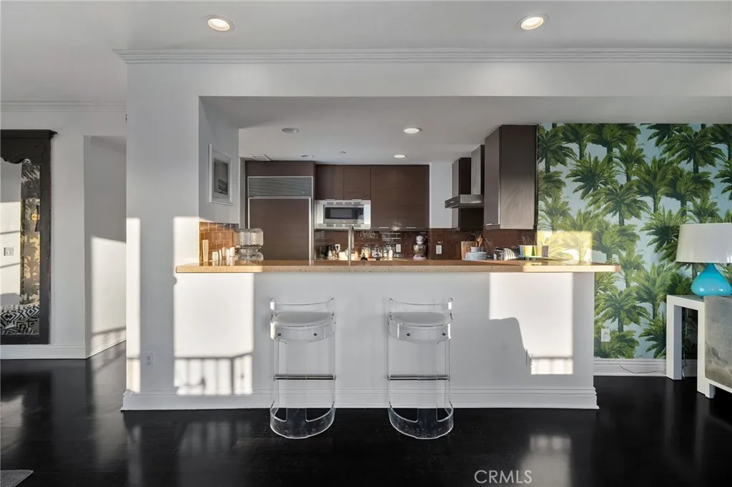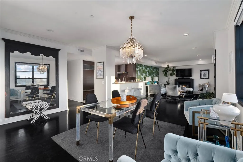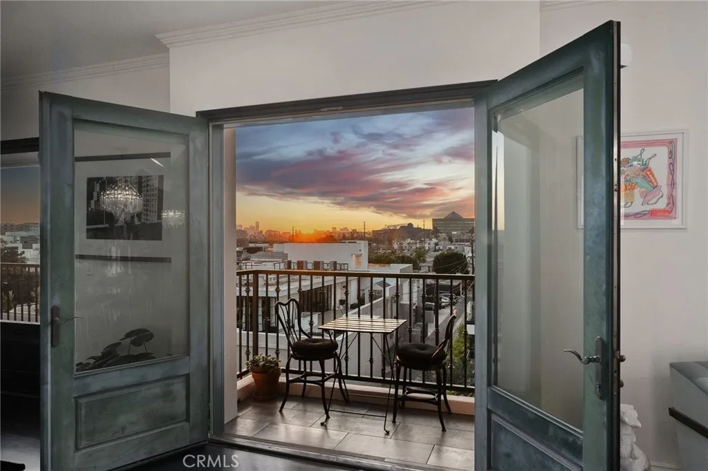 Experience the Essence of West Hollywood Living. Step into a dream PENTHOUSE retreat where style meets sophistication. Perched on the top level of the glamorous building, this light-filled, SINGLE-LEVEL, front-facing residence on the 4th floor offers unmatched privacy with only one shared wall and panoramic views. Just moments from the allure of Melrose Place, youll find yourself surrounded by high-fashion boutiques, the vibrant Sunday Farmers Market, quaint cafes and the city's most iconic destinations. The building itself radiates classic Hollywood charm, blending timeless elegance with modern safety and serenity. Inside, a spacious living area welcomes you with walls of light streaming through French doors, opening to balconies showcasing breathtaking vistas of sparkling city lights and the iconic Hollywood Hillsa view as enchanting as the city it embraces. The kitchen is a true chefs delight, boasting top-of-the-line appliances that combine both form, function with a view of the city. A dedicated dining area perfectly complements the culinary space, setting the stage for unforgettable gatherings. When the celebrations wind down, retreat to the expansive master bedroom, a sanctuary of comfort and calm, complete with a luxurious ensuite bathroom designed for ultimate relaxation. Two additional bedrooms provide ample room for family or guests, each offering its own blend of warmth and privacy. For added convenience, this residence features an individual laundry room with a brand-new washer and dryeradding a touch of practicality to this luxurious home. Convenience meets ex