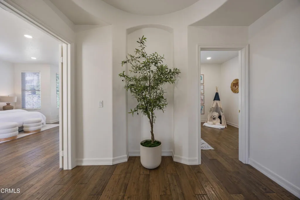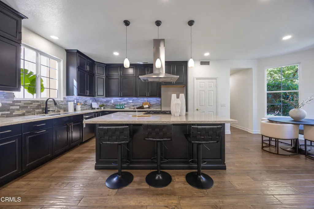 Nestled within La Vina, a private gated community that embodies prestige, sophistication, and timeless beauty, this 5-bedroom + office (or 6th bedroom) residence captures the essence of modern California living, where architectural warmth meets contemporary innovation. Every space evokes serenity, comfort, and connection to nature.Step into this Spanish Revival masterpiece, where a soaring two-story foyer and sparkling crystal chandelier set the tone for the beautifully renewed interior, warmed by a floor-to-ceiling fireplace and bathed in natural light from an abundance of windows.French doors open to the interior courtyard, a sun-filled sanctuary that blurs the line between indoors and out. Multiple patios, garden spaces, and open-air seating areas invite al-fresco dining, play, and relaxation, perfect for dinner parties or weekend fun under the California sky.An open yet defined floor plan welcomes you inside. The elegant living room and formal dining room provide distinct spaces for gathering, while the inviting family room opens directly to the chef's kitchen and breakfast nook, creating a seamless flow for everyday living and entertaining. The kitchen impresses with premium stone countertops, designer cabinetry, stainless-steel appliances, and a generous prep island ideal for both casual dining and culinary creativity.The newly re-envisioned primary suite offers a true retreat with spa-inspired luxury: a freestanding soaking tub, dual walk-in shower, exquisite tilework, and an oversized walk-in closet. Additional bedrooms provide versatility for family, guests, or a h