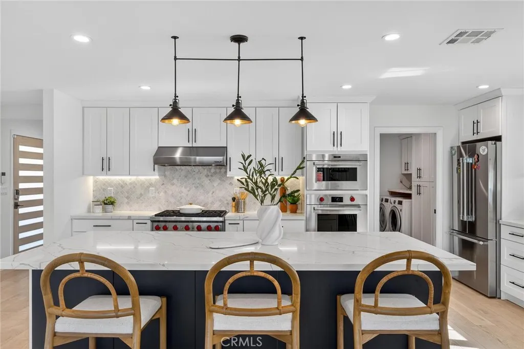 Discover the perfect blend of comfort, style, and coastal elegance in this beautifully reimagined single-level home in Rancho Palos Verdes desirable Los Verdes neighborhood. Extensively remodeled in 2020 and set on a 9,000+ sq. ft. lot, this 5-bedroom, 2.5-bath residence combines modern design with everyday comfort. Natural light fills the open floor plan through floor-to-ceiling sliders that showcase ocean and sunset views. The updated kitchen features a large center island, Wolf appliances, and abundant cabinetry, opening seamlessly to the dining and family areas, perfect for hosting gatherings or enjoying family time. The primary suite enjoys peaceful ocean views and opens directly to the backyard through a sliding door, complete with an en-suite bath. Outside, the thoughtfully designed landscaping enhances curb appeal, while the backyard and spacious patio provide a private retreat ideal for al fresco dining, play, and relaxation under the coastal sky. Additional highlights include a newer roof, upgraded electrical panel, dual-pane windows, a dedicated laundry room, updated main sewer line, and direct garage access. Conveniently located near award-winning Vista Grande Elementary, scenic trails, shopping, and beachesthis home captures the essence of the Palos Verdes coastal lifestyle.