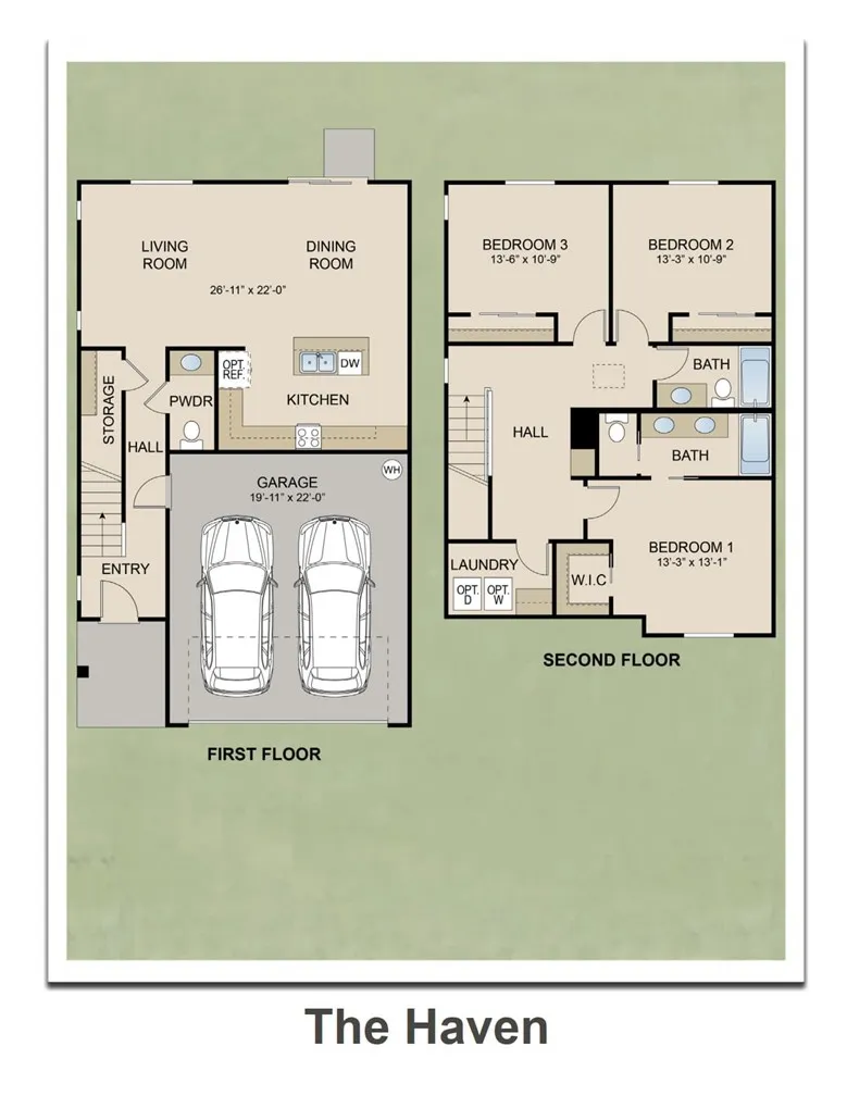 The Haven, our 1623 Sq.ft. Townhome featuring 3 bedrooms and 2.5 baths with an open concept design. No HOA. Photos are renderings of a model.