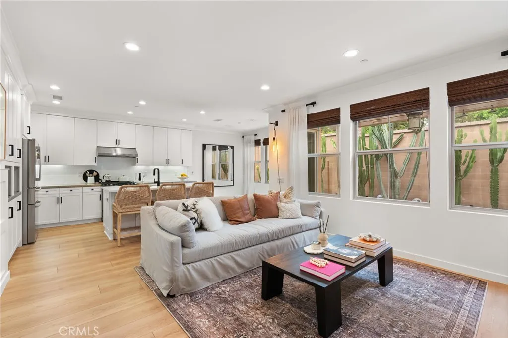 Welcome to 112 Gemstone, located in the highly sought-after Stonegate community. Featuring over $130,000 in custom designer upgrades, this home exudes pride of ownership from the moment you step inside. Elegant touches include custom window coverings, designer light fixtures, upgraded cabinet hardware, and luxurious Phillip Jeffries grasscloth wall coverings. Additional highlights include new Provenza flooring, a quartz kitchen island countertop, pull-out kitchen cabinet drawers, a custom backsplash, custom closets, wainscoting throughout, a bespoke built-in entertainment center, and much more. Every detail reflects superior qualitytheres not a single builder-grade finish in sight, and no expense has been spared. The beautifully tiled backyard patio features sprinklers for the decorative landscaping. The garage is equally impressive, outfitted with custom cabinets, overhead storage, a 240-volt outlet for EV charging, and sleek epoxy flooring. The community offers top-rated Irvine schools and resort-style amenities, including a pool, tennis courts, parks, basketball courts, BBQ areas, and playgrounds. Ideally situated within walking distance to Woodbury Town Center and the Jeffrey Open Space Trail, this stunningly upgraded home truly must be seen in person to be fully appreciated!