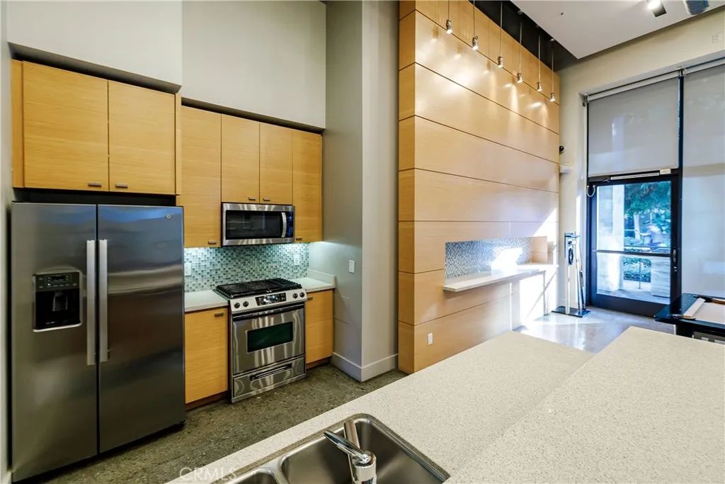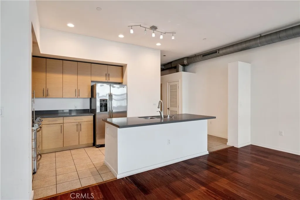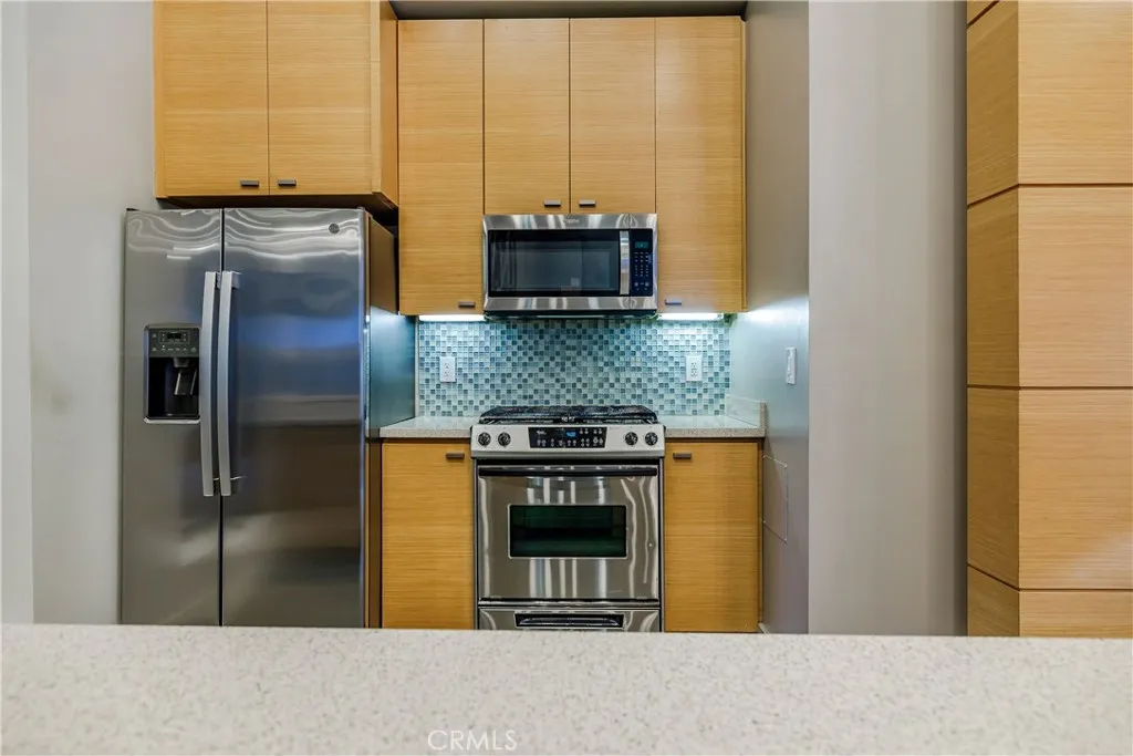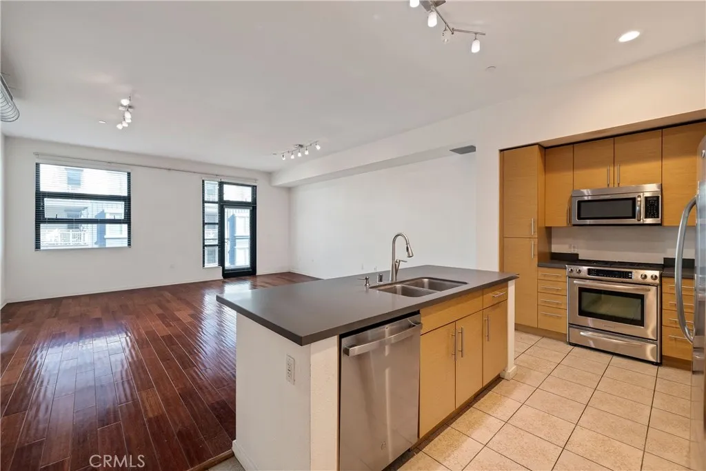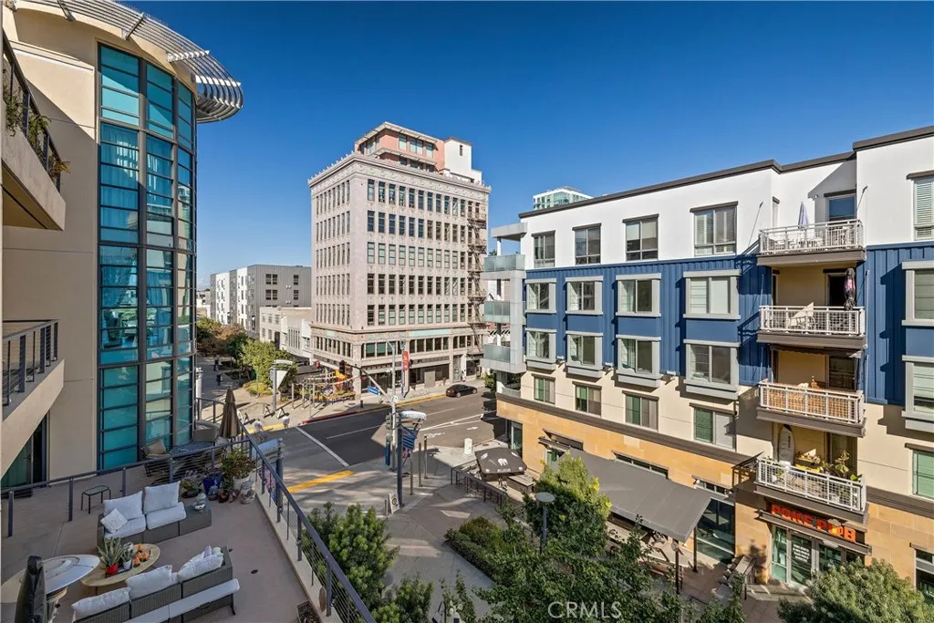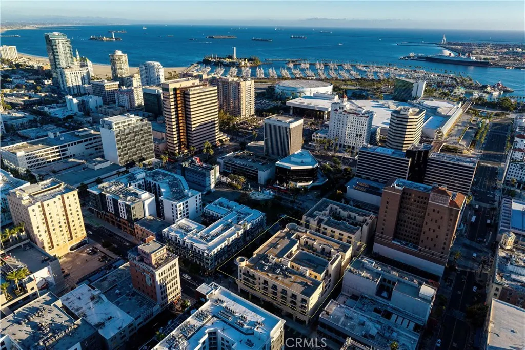 Discover the ultimate expression of coastal luxury and vibrant downtown living, where modern design meets the heartbeat of the city. This ultra modern space is far more than a home, it is a lifestyle destination. With an impressive 1,050 sq ft of bold open concept living, this is the largest one bedroom layout in the building and a rare opportunity to live expansively in one of Long Beachs most desirable urban communities. Vaulted ceilings enhance the airy atmosphere while natural light illuminates every corner. The massive living and dining area with a nook offers flexibility to design the perfect entertainment space, home office, or relaxation zone. Rich hardwood and designer tile flooring add warmth and style, while the quartz gourmet kitchen features stainless steel appliances including a brand new dishwasher. Additional conveniences include AC, in-unit laundry, a modern tankless water heater, and a large hallway storage closet. The spacious bedroom offers excellent storage with double closets. Enjoy Promenade facing views from your private balcony, where you can start your morning with sunshine and unwind in the evening as city lights shimmer. Two gated underground parking spaces plus a significant deeded storage cage provide convenience rarely found in urban living. Located in the exclusive beautifully maintained building, the amenities include guest parking, EV charging, a bike room, a stylish club lounge with a kitchen, television, pool table and shuffleboard, a gym with a yoga studio, and an outdoor courtyard with lounge seating and a cozy firepit. High speed inter