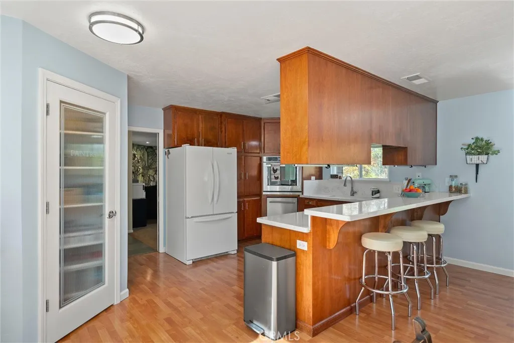 Welcome to a Forest Ranch retreat that beautifully blends comfort, style, and the joy of mountain living. Nestled among the pines on two peaceful acres, this thoughtfully updated 3-bedroom, 2.5-bathroom home offers over 2,200 sq. ft. of inviting living space designed for relaxation, connection, and a slower pace of life, just minutes from central Forest Ranch and a scenic 15-minute drive to Chico. Step inside to a bright and open main living room filled with natural light and serene views of the forested backyard. A wall of windows and French doors creates a seamless indoor-outdoor connection, while the rock accent wall provides a stunning backdrop to the pellet stove, keeping the home warm and cozy through the cooler seasons. Just off the kitchen sits a second living/dining area with a warm, rustic feel. Here, a second pellet stove set against a rock hearth anchors the space, while large windows frame views of the front yard and mature fruit trees, letting sunlight pour in throughout the day. French doors offer additional backyard access, enhancing the homes natural flow. The beautifully remodeled kitchen is sure to impress, featuring elevated quartz countertops, a Thermador induction cooktop, a KitchenAid convection oven and dishwasher, stylish cabinetry with modern hardware, bar-top seating, and a walk-in pantry. Whether cooking a quiet dinner at home or hosting friends, this kitchen was designed with both function and style in mind. Off this space, youll also find a convenient half bath and a laundry/mud room with a utility sink, storage, and exterior access. Down the h
