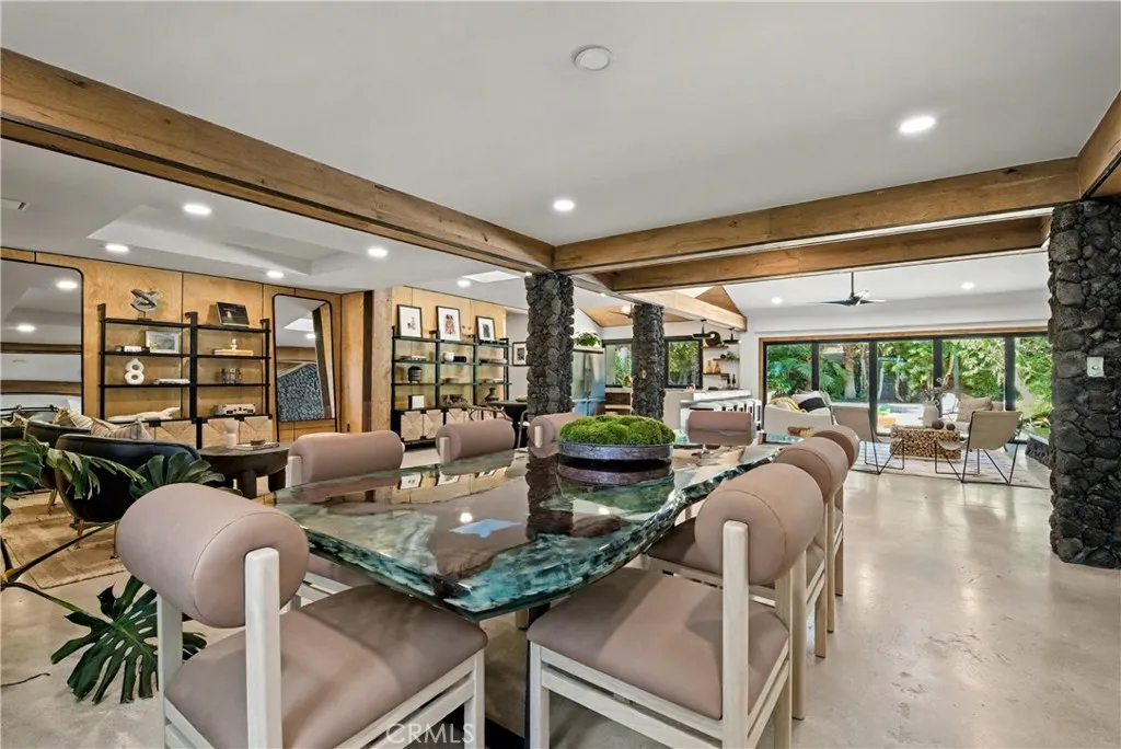 If youve ever wished you could live in a resort, this might be your dream home. Inspired by life in Hawaii, 9701 Bothwell Road in the sought-after Devonshire Highlands neighborhood of Northridge offers an unexpected oasis in one of the most desirable areas of the northern San Fernando Valley. Custom concrete finishes and lava rock accents bring a subtle island aesthetic home. Accordion-style bi-fold doors open to the backyard, where a pool, spa, and tanning ledge sit amid lush tropical foliage. The result is seamless indoor outdoor living that defines the Southern California lifestyle. Inside, this single-story Northridge luxury home unfolds into multiple living areas, including two family or den spaces separated by an impressive double-sided lava rock fireplace. The open floor plan offers flexibility for dining, a home office, or creative production, with several photo-worthy backdrops ideal for content creators or influencers. The kitchen features Fisher & Paykel appliances, including dual refrigerators and an induction cooktop. Throughout the home, youll find custom woods, designer hardware, and thoughtful finishes. The primary suite feels like a private retreat, with a spa-inspired bath and rich natural materials that create a calm, resort-like experience. With four total bedrooms (including a secondary suite currently used as a den with its own mini-kitchen and possible future junior ADU) and three and a half custom baths, this is a home unlike any other in the Valley. The property is also fully wheelchair accessible and barrier-free, incorporating significant Universa