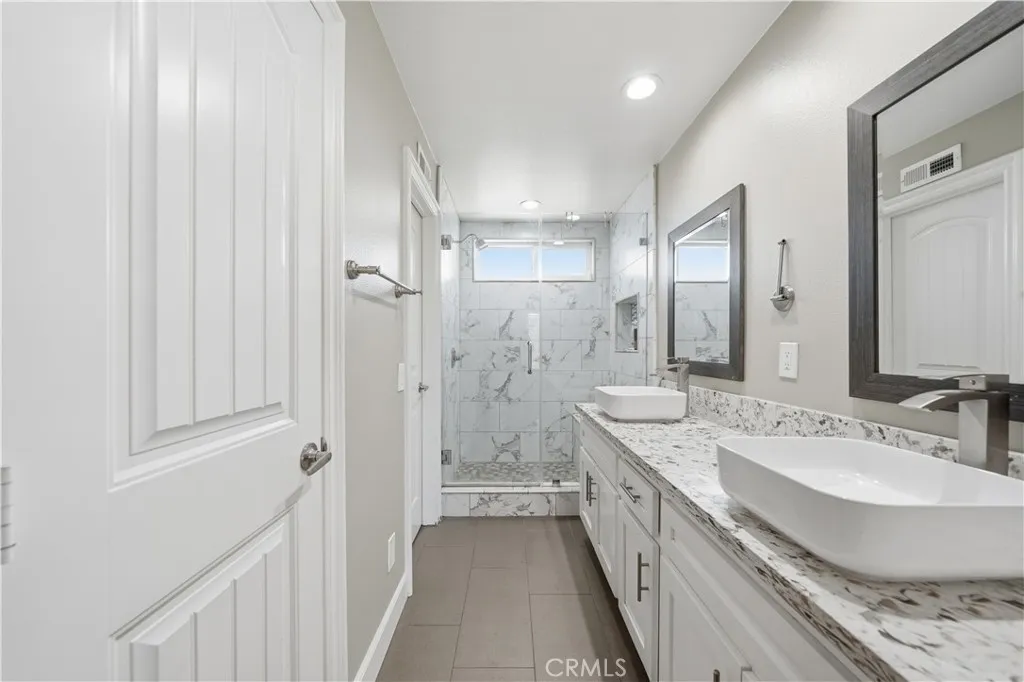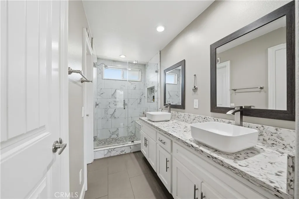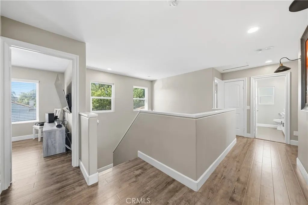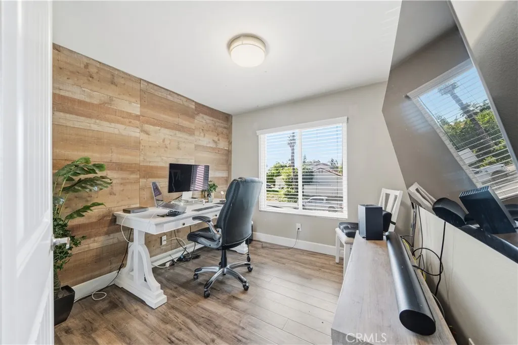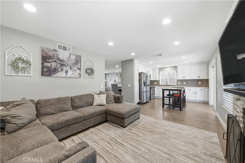 Beautifully upgraded 5-bedroom Murrieta home with no HOA or Mello Roos, featuring quartz-top kitchen, modern plank flooring, and a backyard with endless potential! Light, bright, and move-in ready, this home has been lovingly maintained and enhanced throughout with thoughtful upgrades that blend comfort, efficiency, and style. Step through the leaded-glass front door into a spacious great room that flows effortlessly into the formal living and dining areas. The kitchen impresses with gleaming quartz countertops, elegant glass backsplash, stainless steel appliances, gas stove, and a roomy pantry perfect for everyday meals or entertaining. A modern metal-scroll staircase leads upstairs to five generous bedrooms, including a spacious primary suite with vaulted ceilings, walk-in closet, and an upgraded bath featuring a stunning walk-in shower. The guest bath offers dual sinks, quartz counters, and a soaking tub, while a convenient half bath serves guests downstairs. Additional highlights include LED recessed lighting, dual-pane windows and doors, paneled interior doors, and a new garage door. The large backyard is your private retreat complete with lush green lawn, automatic sprinklers, covered patio with ceiling fan, bar area, palm tree, and an above-ground spa shaded by a pergola. Ideally located near top-rated schools, shopping, parks, and easy freeway access, this Murrieta gem truly has it all.