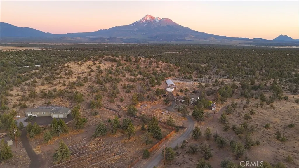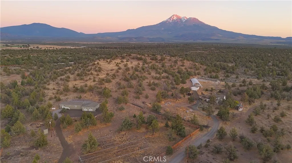 Tucked at the end of a quiet private road, this 1,921 sq ft home offers privacy, space, and stunning Mt. Shasta views. Located in the charming town of Montague, known for its rural beauty and small-town feel, the home features 3 bedrooms and a full bath upstairs with a cozy landing area. Downstairs includes a spacious great room, large kitchen with custom cabinetry, second bath, laundry, and solarium. A converted garage adds a 4th bedroom/bonus room with its own entrance, walk-in closet, and mini-split system. Outside youll find a 24' x 36' insulated, heated garage/shop, automated sprinklers, fenced garden, fruit trees, chicken coop, RV parking, and more. A perfect blend of comfort, utility, and scenic surroundings! The accuracy of the information provided is deemed reliable but is not guaranteed, is subject to change and should be independently verified