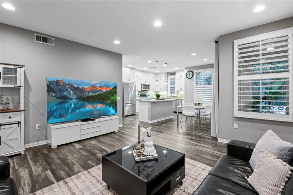 This stunning single-story corner unit offers tranquil greenbelt views and an open-concept layout with luxury vinyl plank flooring throughout the main living spaces. Great for a starter home or an investment! The home features two well-appointed bedrooms on the main level, including a primary suite with a walk-in shower and spacious walk-in closet. Elegant plantation shutters and recessed lighting enhance every room, while a dedicated laundry room adds convenience. The gourmet kitchen showcases granite countertops, stainless steel appliances, water filtration system, and a gas range, complemented by an kitchen island that doubles as a casual dining spot. The formal dining area flows seamlessly to a private balcony overlooking the peaceful greenbelt. Additional highlights include a tandem 2-car garage with generous storage space. Situated in the highly sought-after Portola Springs community, this home is zoned for award-winning Irvine Unified School District schools and offers residents access to exceptional resort-style amenities. MOTIVATED SELLER, BRING IN ALL OFFERS!