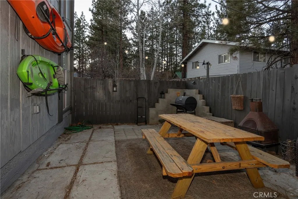 Cozy Cabin Retreat you've been waiting for. Escape to this charming cabin, just minutes from Snow Summit, Bear Mountain, and other local amenities. Perfect for a relaxing getaway. With rustic charm and modern comfort, it accommodates families with level parking for 3 cars in the driveway. Step inside to a warm, inviting living area featuring a wood-burning fireplaceideal for cozy evenings. The fully equipped kitchen includes a Nespresso and Keurig coffee maker, making mornings a delight. Enjoy the beautifully landscaped backyard, complete with rock steps for easy access. The outdoor space is perfect for entertaining with a BBQ, dining table, and kayaks for your use. Savor the fresh mountain air and scenic views with your family, friends, or furry companions! Recent upgrades include fresh exterior paint, new smart lock door, newly installed washer/dryer hookups, and thoughtful landscaping in the backyard, ensuring a seamless blend of style and functionality. Whether youre here to ski, kayak, or simply unwind, this cabin is the ultimate retreat for mountain adventures and peaceful moments alike. Dont miss this opportunity to own a cozy haven near Big Bears best attractions!