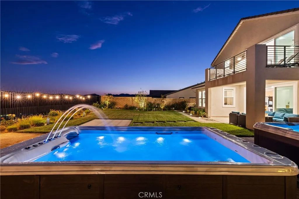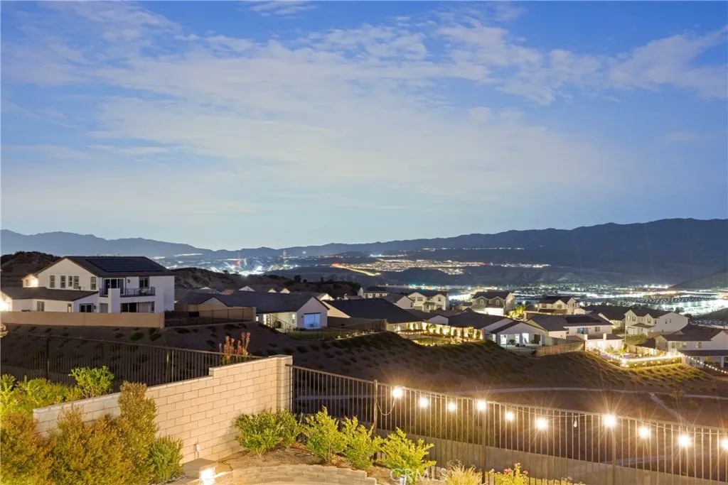 Beautifully upgraded home in the desirable Meadow Collection at Williams Ranch showcases nearly 180-degree panoramic VIEWS and incredible designer upgrades throughout. You are welcomed by a charming covered porch that invites you to sit back and stay awhile, blending comfort and curb appeal in one perfect first impression. The spacious floor plan features 3 bedrooms, a versatile loft, 2.5 baths, and 3-car garage. An open-concept kitchen offers elegant cabinetry, stainless steel appliances, large center island, separate dining area, and seamlessly flow into the family room, where triple sliding doors open to a covered patio, ideal for indoor-outdoor living and entertaining. Upstairs, the primary suite is a true retreat featuring a spa-inspired bathroom with dual sinks, oversized shower, walk-in closet, and triple sliding doors that lead to a private balcony with stunning city and mountain views. Two additional bedrooms with good-sized closets also have views and share access to a hallway bath with dual sinks and shower. Designed for entertaining and easy living, this custom-landscaped property features a front yard with pristine artificial turf, river rock accents, and drought-tolerant plants. The inviting backyard offers ambient lighting, stylish pavers, beautiful lawn, and a resistance swim pool and jacuzzi, perfect for unwinding or hosting gatherings under the stars. Additional highlights include luxury vinyl plank flooring, custom lighting, automatic window shades, ceiling fans, tankless water heater, and PAID solar. Nestled within the master-planned gated community, res