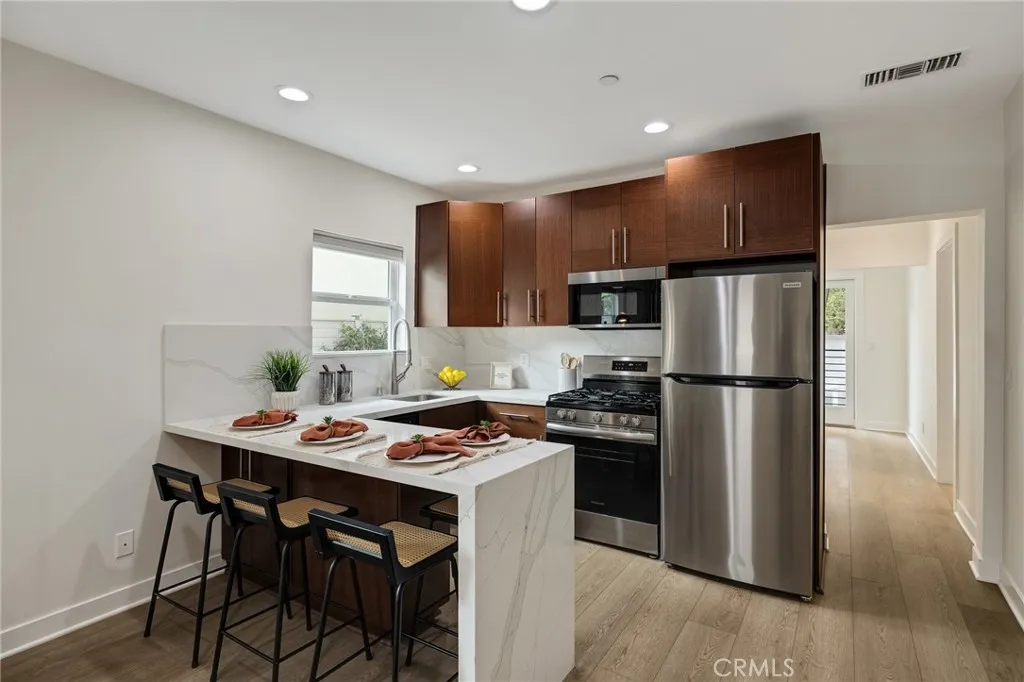 Welcome to 724 San Miguel Ave, a beautifully updated single-family home nestled in the vibrant heart of Venice. Just a short walk from the iconic Abbott Kinney Blvd and the stunning Venice Beach, this residence offers the perfect blend of charm and modern convenience. This recently renovated 3-bedroom, 3-bathroom home boasts a host of upgrades, including new quartz kitchen countertops, state-of-the-art kitchen appliances, a brand-new HVAC system, and elegant engineered hardwood floors. The interior and exterior have been freshly painted, complemented by recessed lighting throughout. Upon entering, you'll find an open-concept living area that seamlessly connects the kitchen and living room. The entry-level features two bedrooms, each with large walk-in closets and dual-pane windows that flood the rooms with natural light. The back primary bedroom includes an en-suite bathroom and opens up to a private backyard patio and charming yard. Additional storage is available in the spacious attic, easily accessible via a pulldown ladder. Upstairs, discover a bright and cheerful third bedroom with its own en-suite bathroom, ample closet space, and a private porchperfect for enjoying your morning coffee. Outdoor enthusiasts will appreciate the ultra-private fenced-in yard with multiple areas for entertaining. Parking is convenient with space for two cars in tandem in the driveway and additional street parking available. Don't miss your chance to own this stunning home in one of Venice's most sought-after locations. Schedule a viewing today before it's SOLD!