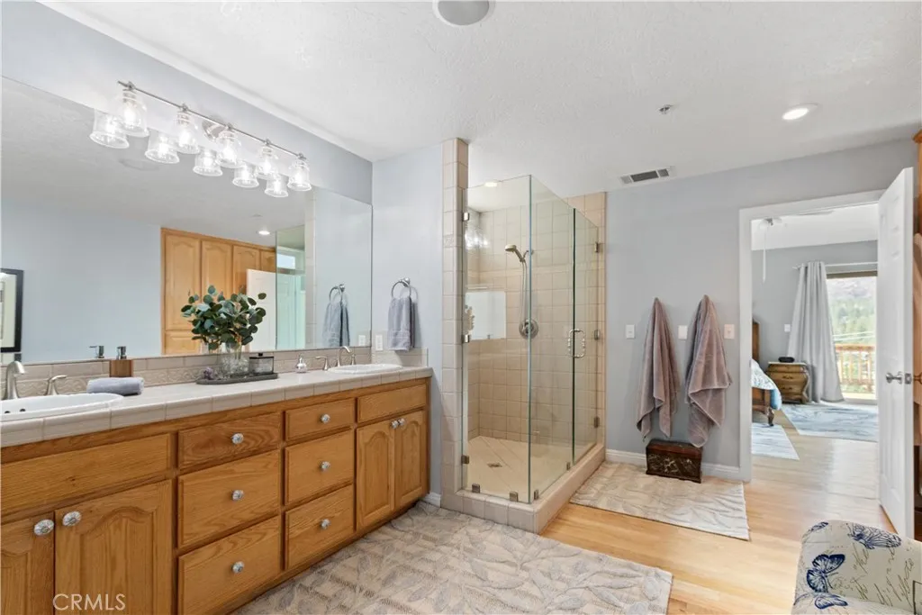 Discover this stunning home on the sunny side of Wrightwood, where the sunlight bathes the property and snow melts quickly away. Nestled on a peaceful cul-de-sac on Apple Vista Drive in the secluded neighborhood located up Rivera Dr. This elevated residence offers breathtaking, unobstructed views of the north facing mountains preserving the snow covered landscape longer than any other part of town. Built in 2007, this spacious 2,631-square-foot home features 3 bedrooms and 3 full bathrooms. The chefs kitchen is equipped with highend stainless steel appliances, a large countertop burner, granite countertops, and custom cabinetry. Ample storage options include a walk-in pantry and utility room, making organization effortless. The main floor boasts an open-concept dining area and living room, centered around a cozy fireplace. The dining space and kitchen overlook Wrightwoods majestic mountains, offering a picturesque backdrop. Multiple decks provide perfect spots to enjoy the crisp forest air and scenic views. Upstairs, you'll find all three bedrooms including the luxurious primary suite. The primary bedroom is a true retreat with a large soaking tub, dual sinks, and an expansive glass shower. The walk-in closet offers plenty of space for your wardrobe. Both the primary and secondary bedrooms feature access to the decks highest vantage points, perfect for soaking in the natural surroundings. The generously sized bedrooms surpass standard expectations, offering ample comfort and space. Dual air conditioning units ensure year-round comfort, even during the warm summer months. On