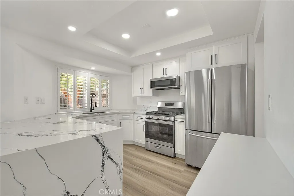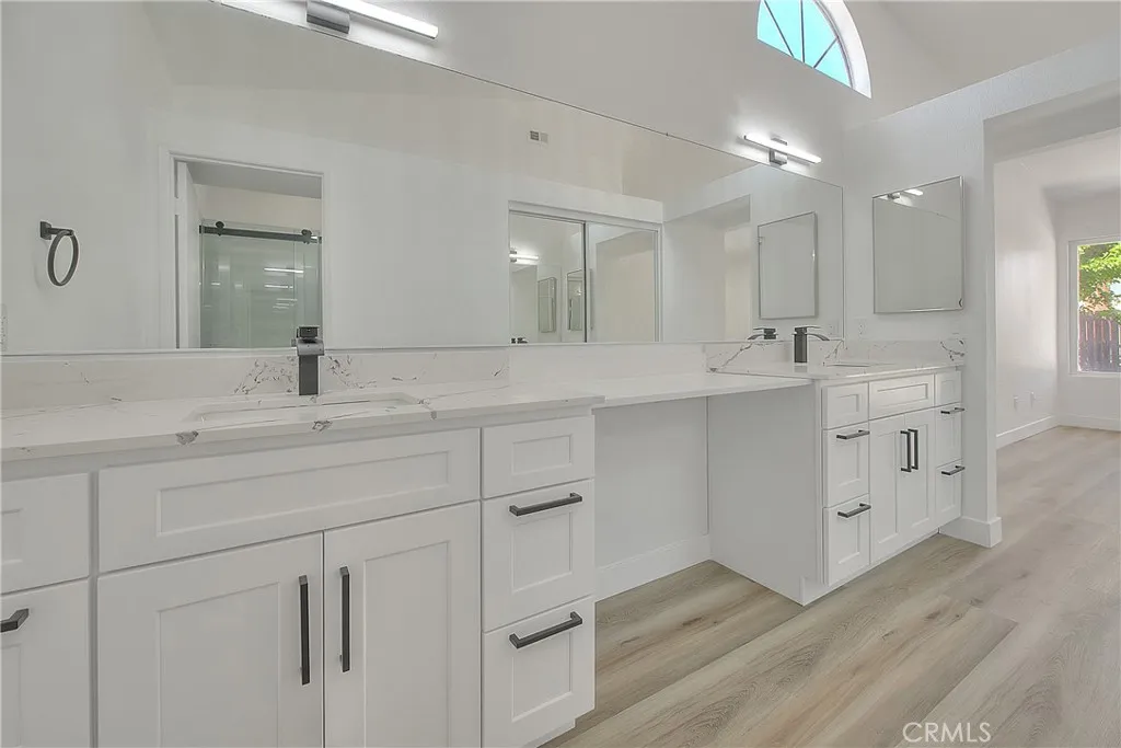 Completely Remodeled Home! Located in a highly desirable Sunnymead Ranch Community. Upon entering you will appreciate the cathedral ceilings and all modern features. Well-appointed features include spacious living and dining areas with high ceilings, inviting fireplace and modern light fixtures. New kitchen features lots of modern maple hardwood cabinets, quartz countertops & stainless-steel appliances. Family room with direct access to a relaxing patio. New bathroom with lots of modern features, lighted bathroom mirror & marble countertop. Lovely master bedroom with high ceiling, his and hers closet and direct access to a relaxing patio. Master suite bath features a dual sink with marble counters, and a new walking shower with lots of modern features. Large back yard with cover patio and natural shades. Additional amenities include new paint inside and outside, dual pane windows, new recessed lighting, and new waterproof laminate flooring throughout, inside laundry area with direct access to a 3 car garage and much more. Enjoy resort-like community that offers a relaxing lake, clubhouse with swimming pool, spa, sport courts, & fitness center. Conveniently located across the street from Sugar Hill Elementary School, walking distance to parks and trails. Close to shopping centers, restaurants and 60 FWY. Seller's incentives to the buyer available. Make this your dream home! Some of the photos have been virtually staged.