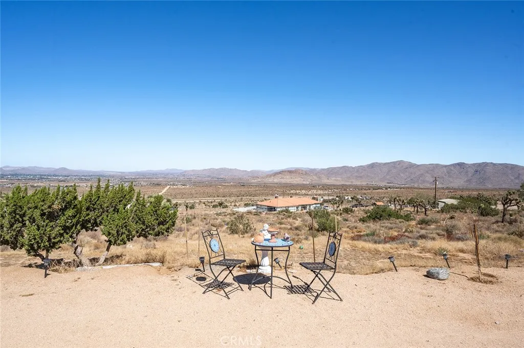 Welcome to this charming 3-bedroom, 2-bath home nestled on a spacious 0.58-acre lot in the scenic hills of Apple Valley. Built in 1966, this beautifully maintained home offers 1,188 square feet of comfortable living space with a welcoming and functional layout. Step inside to find a spacious family room featuring a cozy wood-burning fireplace insertperfect for relaxing evenings or family gatherings. The light-filled kitchen and dining area provide plenty of room for cooking and entertaining, while the three generously sized bedrooms and two full bathrooms ensure comfort and convenience for everyone. Additional highlights include an indoor laundry area, central air and heating, solar power with low monthly payments, and a septic system. Outside, youll enjoy the peaceful desert setting with mountain views, ample yard space for gardening or future expansion, and a charming front porch ideal for watching beautiful sunrises and sunsets. Located in a quiet rural neighborhood yet close to shopping, dining, and schools, this home offers the perfect blend of tranquility and accessibility. Whether youre a first-time buyer, investor, or simply looking for a private retreat, 9459 Valley Vista Avenue is a wonderful place to call home.