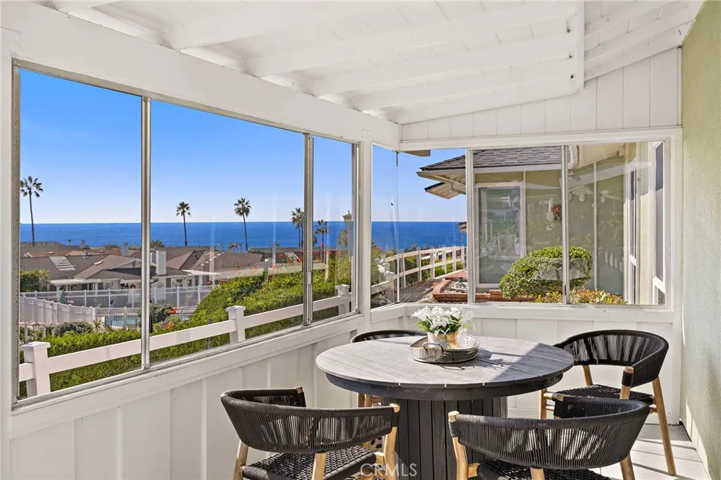 Perched in the sought-after Colony Cove community, 408 Camino San Clemente offers spacious single- level living with captivating Pacific Ocean views and refreshing coastal breezes throughout. This 55+ beach home blends comfortable coastal style with a relaxed, seaside lifestyle. The living area is bright and welcoming, featuring a cozy fireplace and slider doors that open to a covered porch, where sunsets over the ocean create a daily highlight. Both bedrooms showcase sweeping views, with the primary suite offering mirrored closet sliders and an attached bathroom. The galley-style kitchen includes crisp white cabinetry, Corian countertops, and tile flooring. Bathrooms are enhanced by tile countertops, with one providing access to an open-air garden atrium, providing a private, serene retreat. The hallway offers generous built-in storage, and access to attic with pull-down ladder. A detached garage provides secure parking, with guest parking located conveniently nearby. Colony Coves prime location is within walking distance of the beach, and has direct access to Sea Summit walking trails along the bluff and is a short drive to the pier, trendy restaurants, and the San Clemente Outlet Mall. Community amenities include two sparkling pools, a clubhouse, and beautifully maintained greenbelts, perfect for enjoying the outdoors. With spacious living areas, seamless indoor-outdoor flow, and stunning ocean vistas, 408 Camino San Clemente is the perfect beachside retreatwhere the ocean views truly take center stage.