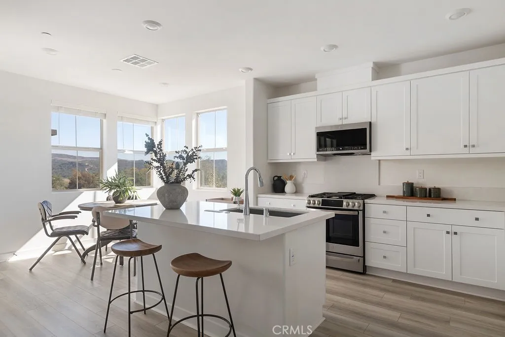Welcome to contemporary California living at its finest. This stunning single-level modern flat offers 2 bedrooms, 2 baths, and approximately 1,100 sq ft of beautifully designed interior space in the highly sought-after Portico enclave of Rancho Mission Viejo. Built in 2023, the residence blends clean architectural lines with elegant finishes and effortless comfort. Step inside to an open-concept living area featuring a designer kitchen with quartz countertops, stainless-steel appliances, and a sunlit dining nook that opens to a private balcony overlooking peaceful mountain vistas. Both bedrooms enjoy ample natural light and privacy, including a serene primary suite with an en-suite bath. A private one-car garage offers convenience and security. Sustainable sophistication meets resort living with solar panels and energy-efficient systems designed for comfort and cost savings. Beyond your front door, discover the world-class amenities of Rancho Mission Viejo multiple resort-style pools and spas, a tranquil pond, fitness centers, sport courts, miles of scenic trails, dog parks, and vibrant community spaces perfect for relaxation or recreation. Every detail of this master-planned community celebrates nature, wellness, and connection. Ideally located in the Village of Rienda, youre moments from upscale shopping, dining, and Orange Countys famed beaches all while surrounded by over 23,000 acres of preserved open space. This move-in-ready residence embodies modern luxury, low-maintenance living, and an unmatched Southern California lifestyle. Dont miss your chance to call this