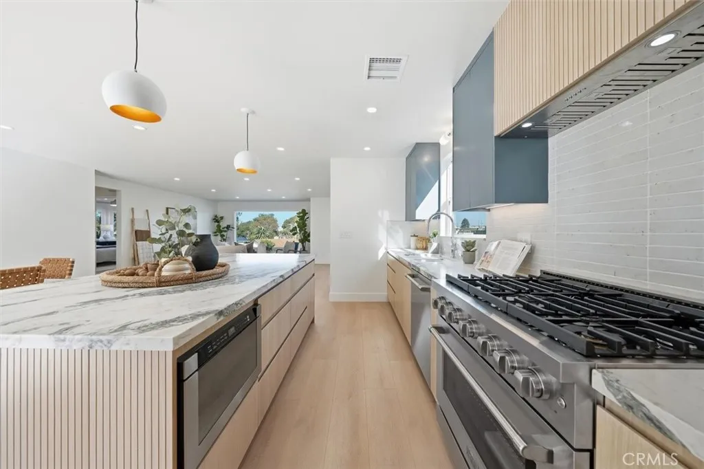 Tucked away on one of the most picturesque, tree lined streets in the highly sought after Hollywood Riviera, this fully remodeled 4 bed, 2 bath coastal modern home blends timeless design with todays most desired upgrades. Surrounded by lush greenery and just steps from El Retiro Park, the setting offers a perfect balance of tranquility and convenience. Inside, natural light fills the open concept living space through a massive picture window, showcasing new wide-plank flooring and a neutral designer palette. The showpiece kitchen features custom white oak cabinetry, sleek quartz countertops, and a suite of high end appliances including a ZLINE 36 inch professional range and GE Caf refrigerator and dishwasher. A large island anchors the space, flowing seamlessly into the dining area and out through sliding glass doors to the beautifully landscaped backyard, an entertainers dream with multiple seating areas and fresh grass. The primary suite offers a serene retreat with a spa-like bath highlighted by a double vanity, frameless glass shower, and elegant tile finishes. Three additional bedrooms provide flexibility for family, guests, or a home office. Every surface has been thoughtfully redone, from the lighting and hardware to the smooth stucco exterior and new landscaping. Adding even more appeal, the home includes a rare 3 car garage equipped with an EV charger, offering both convenience and functionality for modern living.Located just minutes from Riviera Village, Redondo Beach Pier, and award-winning schools, 205 Vista Del Parque embodies modern coastal living at its fines