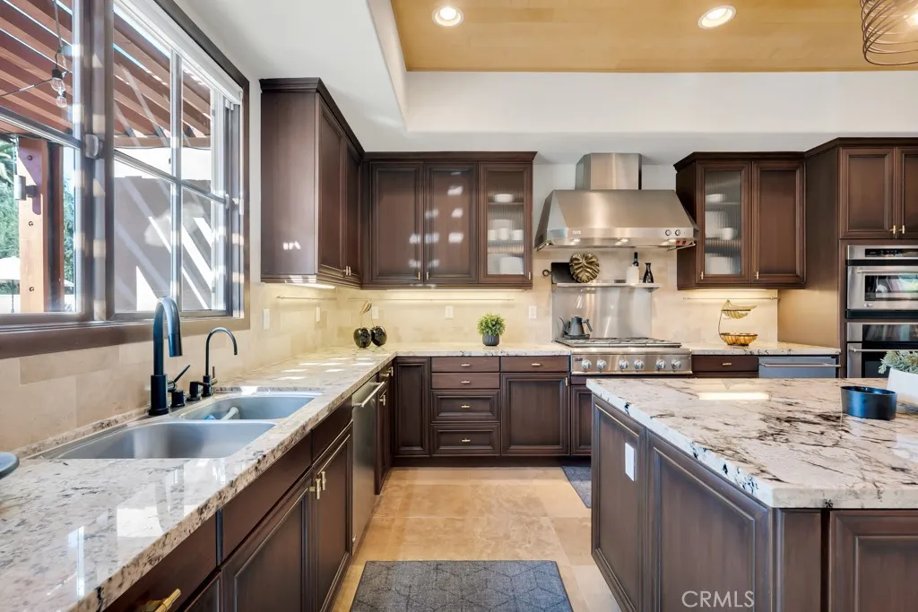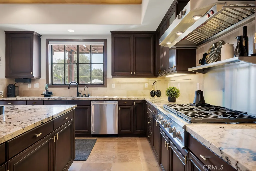 BACK ON MARKET DUE TO BUYER NOT PERFORMING - Welcome to this stunning Modern Tuscan single-story estate in the highly sought-after Rancho Paso Fino community of Chatsworth. Built in 2006 and once serving as one of the original model homes, this 5-bedroom, 3.5-bath residence offers 3,737 sq ft of designer living space on a nearly 20,000 sq ft lot. Every detail has been thoughtfully curated, blending timeless architecture with luxurious modern upgrades throughout. A private front courtyard with a cozy outdoor fireplace and lush landscaping creates a grand first impression, with potential for a beautiful water feature. Inside, a breathtaking grand foyer with soaring ceilings opens to the elegant family room with French doors to the courtyard and a formal dining room opposite the central hallway. The expansive living room features a gas fireplace and custom entertainment center, seamlessly connecting to the chefs kitchen complete with top-of-the-line Monogram appliances, granite countertops, a large center island with sink, and stunning backyard views from every window. Additional highlights include a generous walk-in pantry and a butlers pantry with a wine refrigerator and space for casual dining. The residential wing features three spacious guest bedroomsone with direct courtyard access, ideal for a home officetwo full bathrooms, and ample linen storage. The luxurious primary suite offers an electric fireplace, French doors to the backyard, a large walk-in closet, and a spa-inspired ensuite with dual vanities, a soaking tub, and a walk-in shower. A fifth bedroom near the entr