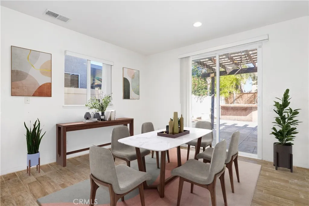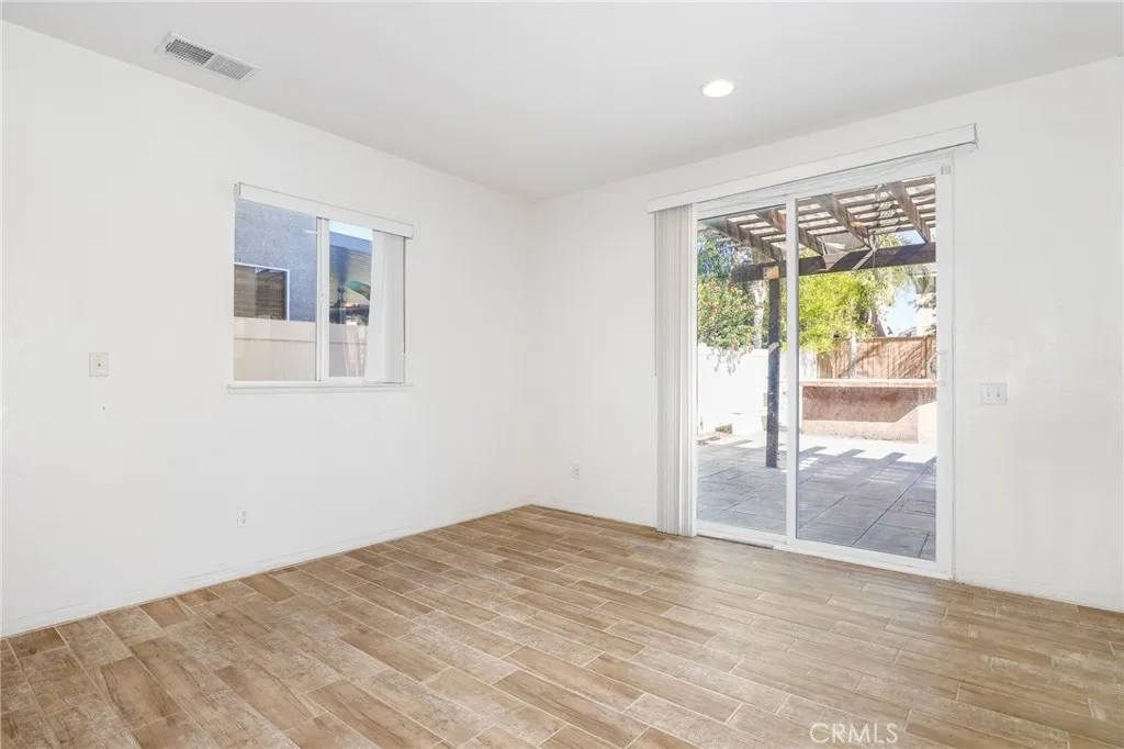 Welcome to 3437 Nature Trail Ct, a beautiful four-bedroom, two-and-a-half-bath residence situated in a tranquil and secluded cul-de-sac. Upon entry, a grand two-story foyer provides access to both a formal living room and a dining area. The kitchen seamlessly connects to a comfortable family room and a secondary dining area, ideal for entertaining and large family gatherings. The downstairs area features a bedroom that can serve as a guest or in-law suite, along with a half bath that includes pre-framed space for the convenient addition of a shower. This home boasts newly installed tile flooring throughout the main areas, ensuring low maintenance and long-term durability. The upstairs level offers a spacious primary suite complete with dual sinks, a soaking tub, a separate shower, and a walk-in closet. Additionally, there are two generously sized bedrooms and a versatile den, which could be converted into a fifth bedroom, perfect for multi-generational living. The backyard features paved flooring, a serene fish pond, and an unfinished outdoor kitchen, awaiting your personal touch. The property includes a two-car attached garage with direct home access, as well as a detached one-car garage that could be utilized as a workshop, storage space, a "man cave," or potentially converted into an accessory dwelling unit (ADU) for rental income. Located within the highly desirable Val Verde Unified School District, this home is just ten minutes from Lake Perris, offering opportunities for boating, fishing, and hiking. It is also conveniently close to schools, shopping, and dining esta