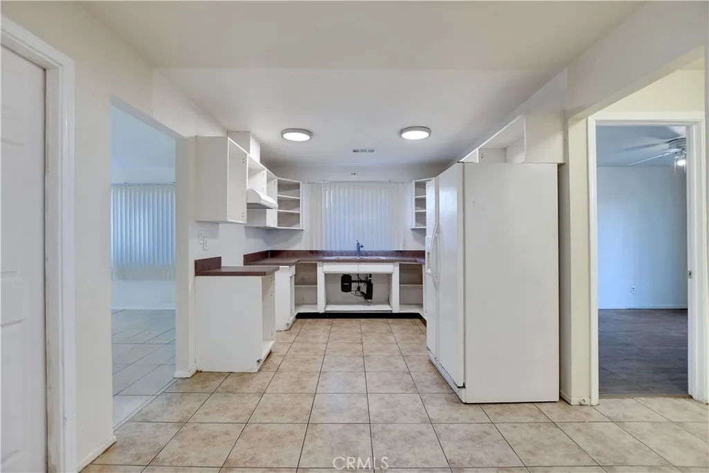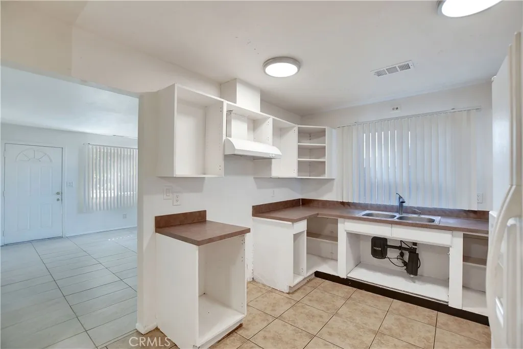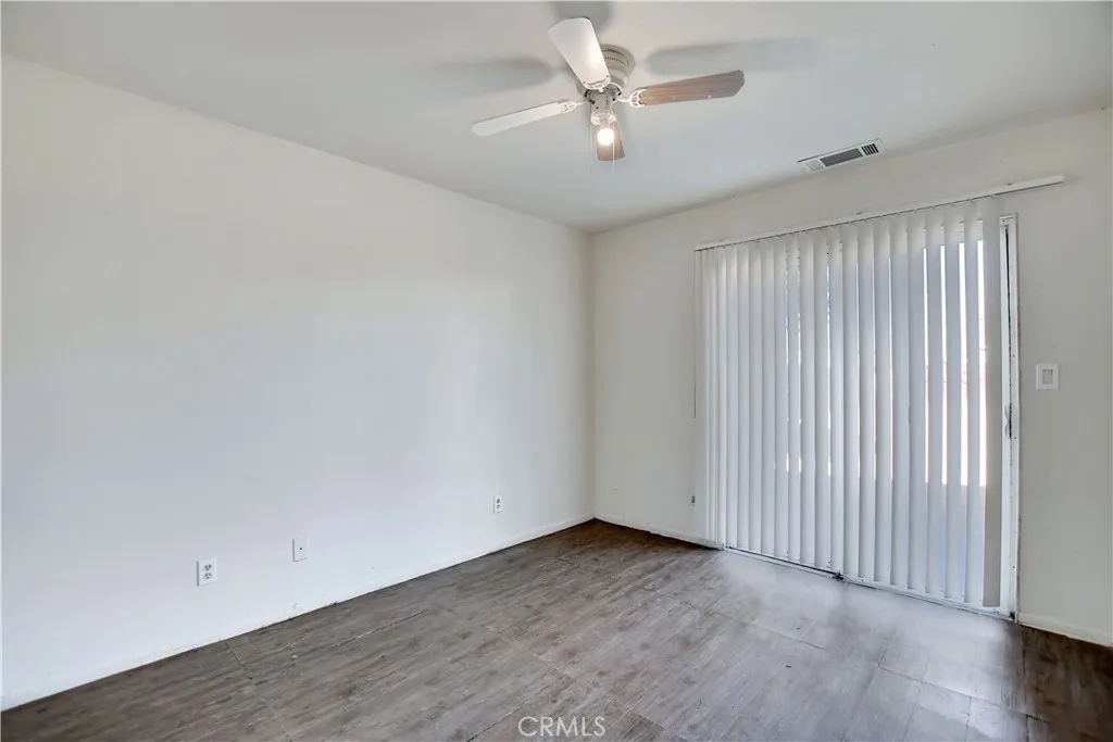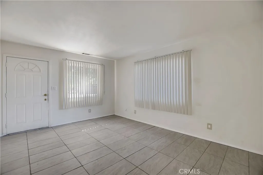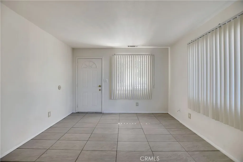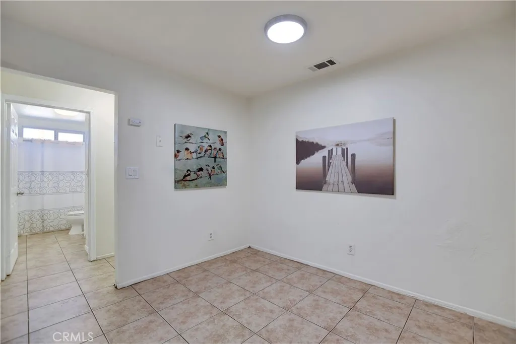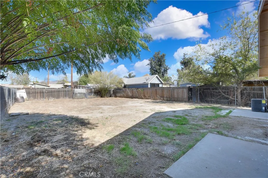 Welcome to this charming single story Hemet home with great potential! This 3 bedroom, 2 bathroom 1046 square foot single story home built in 2003 sits on a generous fully fenced 7841 square foot lot, providing plenty of space and convenience. Featuring an attached 2 car garage and an extended dirt on the side of the driveway area perfect for potential RV parking, this residence combines comfort with practicality. Upon entering, you will be greeted by an abundance of natural light that fills the home. The tile floors and natural light create a warm atmosphere throughout. As you enter, a versatile space awaits, perfect for use as a family room or living area. The kitchen offers a blank slate for your renovation ideas. It opens directly to the dining area with a door for direct garage access, creating a connected and functional layout, and features tile flooring throughout. The hallway bathroom features a shower/tub combo, single sink vanity, and tile flooring. The spacious master bedroom impresses with wood plank flooring, a closet, a ceiling fan, and a sliding glass door leading to the backyard. The master also includes an attached bathroom with a shower/tub combo, single sink vanity, and tile flooring. The additional bedroom offers wood flooring, ceiling fans and generous closet space. The expansive outdoor area serves as a blank canvas for your landscaping preferences, providing plenty of space in both the rear and side yards to add your personal touch. The property features concrete patio, perfect for relaxing or entertaining guests. Whether you envision a garden, a spac