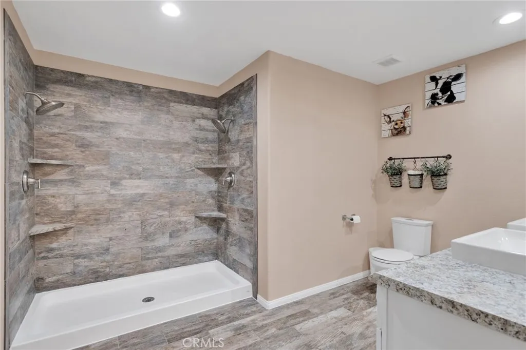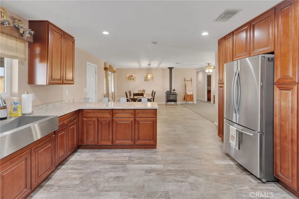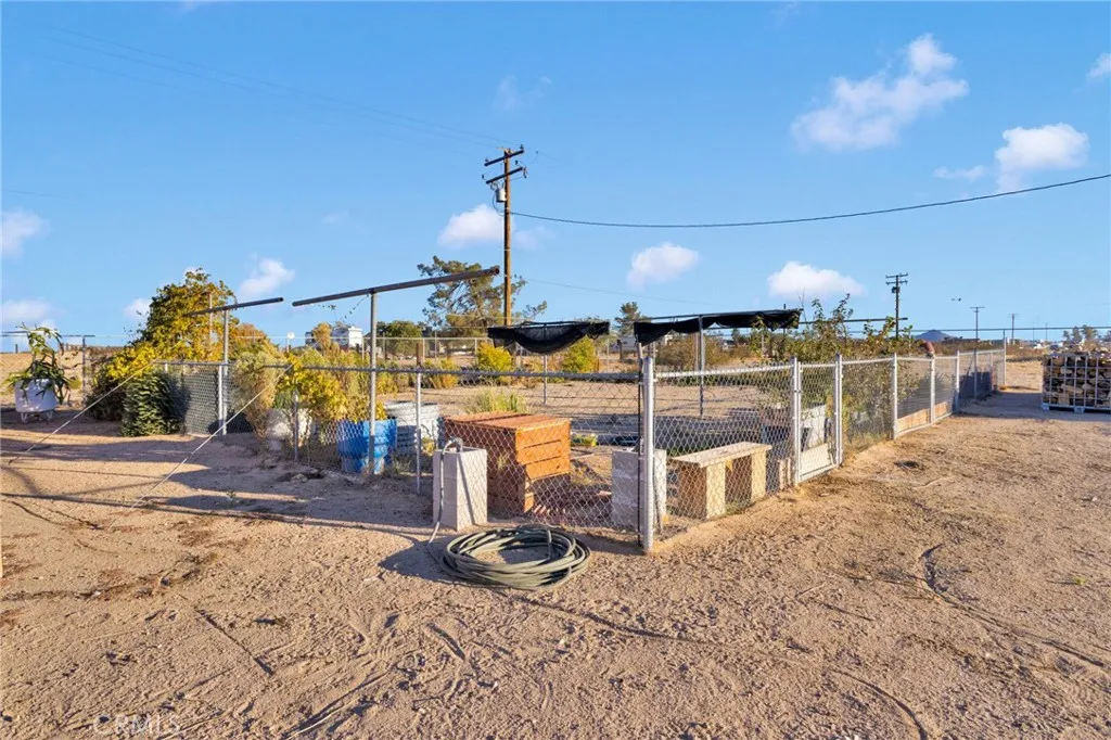 Welcome to your dream home in Barstow! This stunning custom-built 2020 modern farmhouse sits on a fully fenced 2.3 acre lot with an automatic front gate, offering both privacy and convenience. As you step inside, youll immediately notice the open floor plan filled with natural light, tile flooring and carpet throughout recess lighting, and a warm, inviting atmosphere that perfectly blends comfort with modern style. The beautiful kitchen features laminate countertops, a deep stainless-steel sink, ample cabinet space, stainless steel appliances, self closing cabinets and drawers. The breakfast bar provides the perfect spot for casual dining or entertaining guests. Just off the kitchen, the indoor laundry room with cabinet space. The primary bedroom is spacious and thoughtfully designed, complete with a walk-in closet and an ensuite bathroom featuring dual sinks, laminate countertops, a walk-in tile shower with dual shower heads, self closing cabinets and drawers. The two additional bedrooms are generously sized and the other full bathroom has a shower/tub combo, laminate countertops, and self closing cabinets and drawers. Step outside to enjoy the covered back patio, perfect for relaxing and taking in the peaceful desert views. The property includes a chicken coop, private well, well house with a 1,500-gallon storage tank, a garden area, and even a storage containerideal for tools, hobbies, or extra storage needs. A 2-car garage provides additional convenience. Located just minutes from Barstows upcoming BNSF project, this property offers incredible potential for both homeown