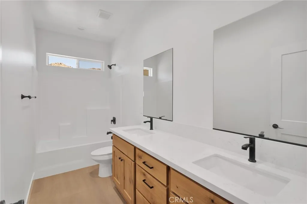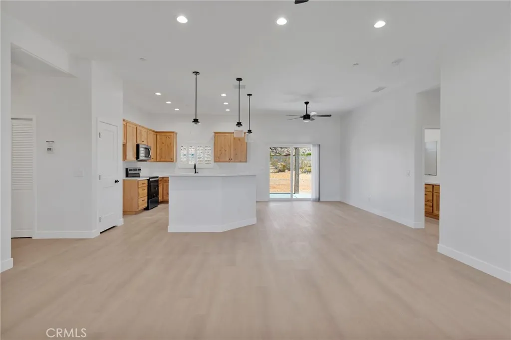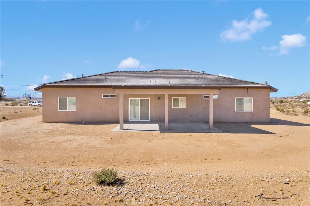 Welcome to this beautifully designed single-story home located in the city of Apple Valley. This new construction home offers a split floor plan with 4-bedrooms and 2-bathrooms. Step inside to find a bright open-concept layout with high ceilings, can lighting and upgraded flooring through-out the home. Kitchen offers quartz countertops, stainless steel appliances, sleek cabinetry and a pantry. The primary master suite offers ample space with an en-suite bathroom and a spacious closet. Outside enjoy a covered patio and beautiful views of the high desert. Home sits on over half an acre that provides plenty of space for privacy, RV access, off-road vehicles and horses. This home offers a 2-car garage, paid off solar, indoor laundry area, ceiling fans and upgraded window coverings through-out. Come see 15575 Desert Star Road!